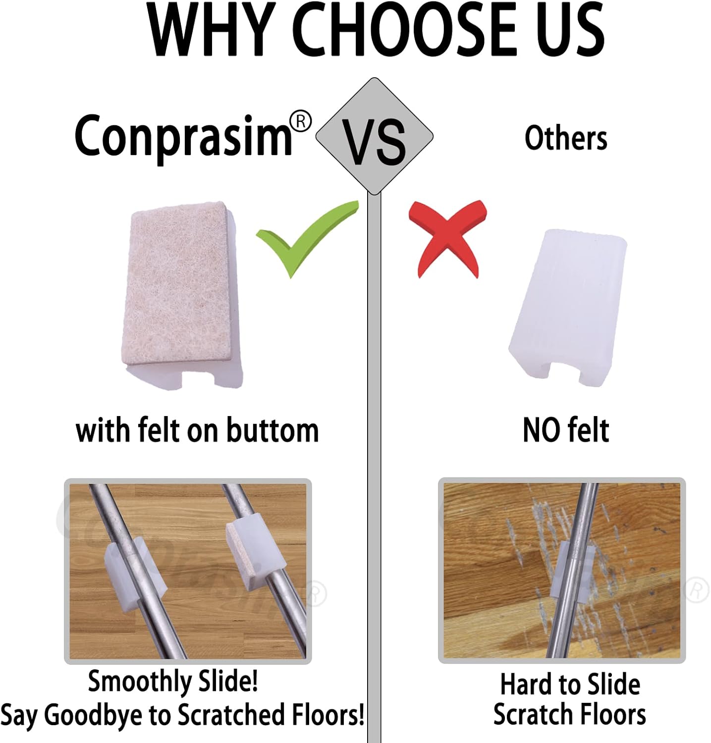- Widely Applications Fit Furniture Feet: Conprasim chair feet protectors fit many typle metal round tube furniture feet, such as: dining room chair, bar stool, patio chair, kitchen chair, metal bistro chairs, desk chair,restaurant chairs,outdoor chairs etc.