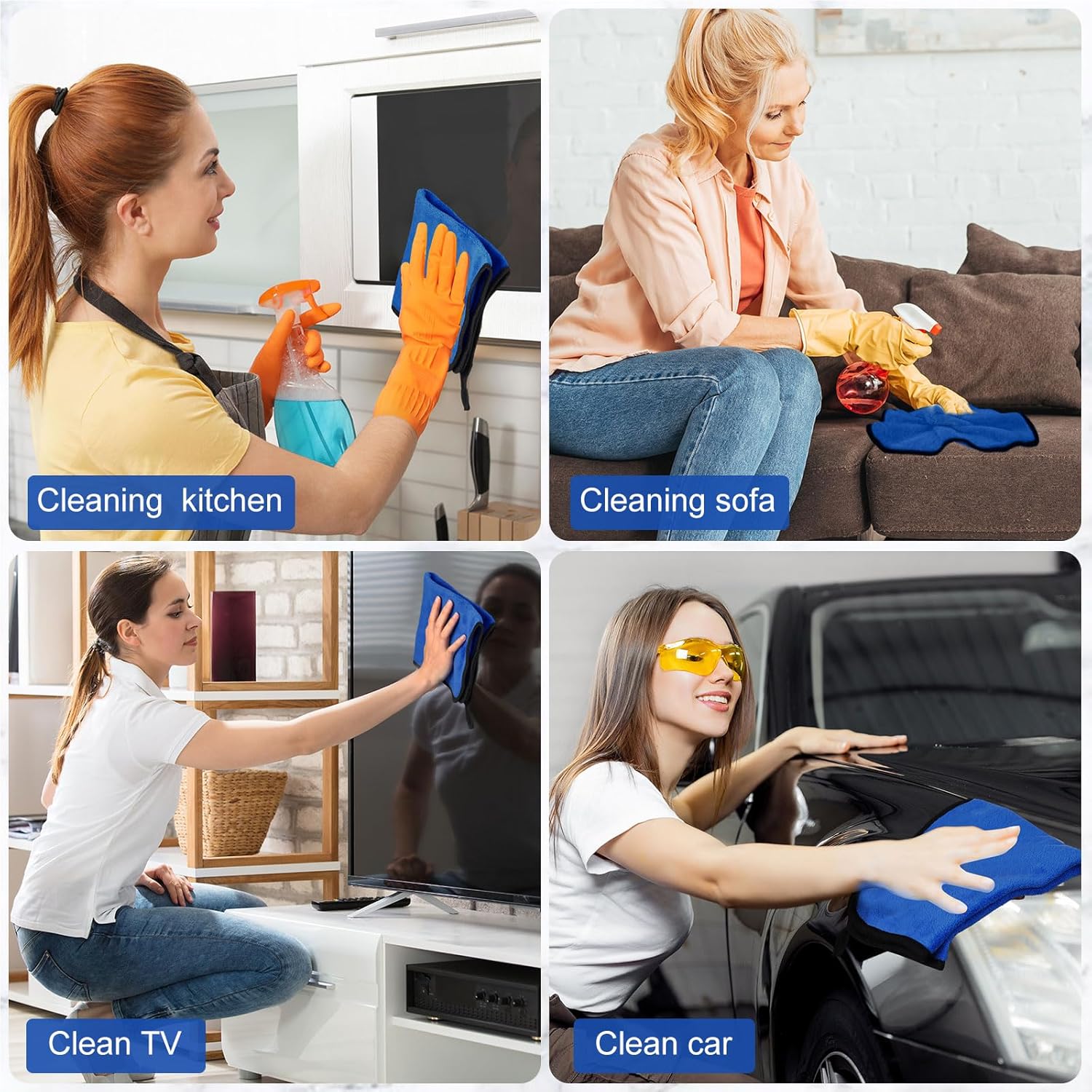 - Multipurpose Use: whether you are cleaning your kitchen, car, office, garage or commercial workplace, these microfiber cleaning cloths will bring you conveniences, they can be applied as car washing towels, auto polishing buffing towels, waxing towels, cleaning towels, wash and reuse multiple times without losing efficacy