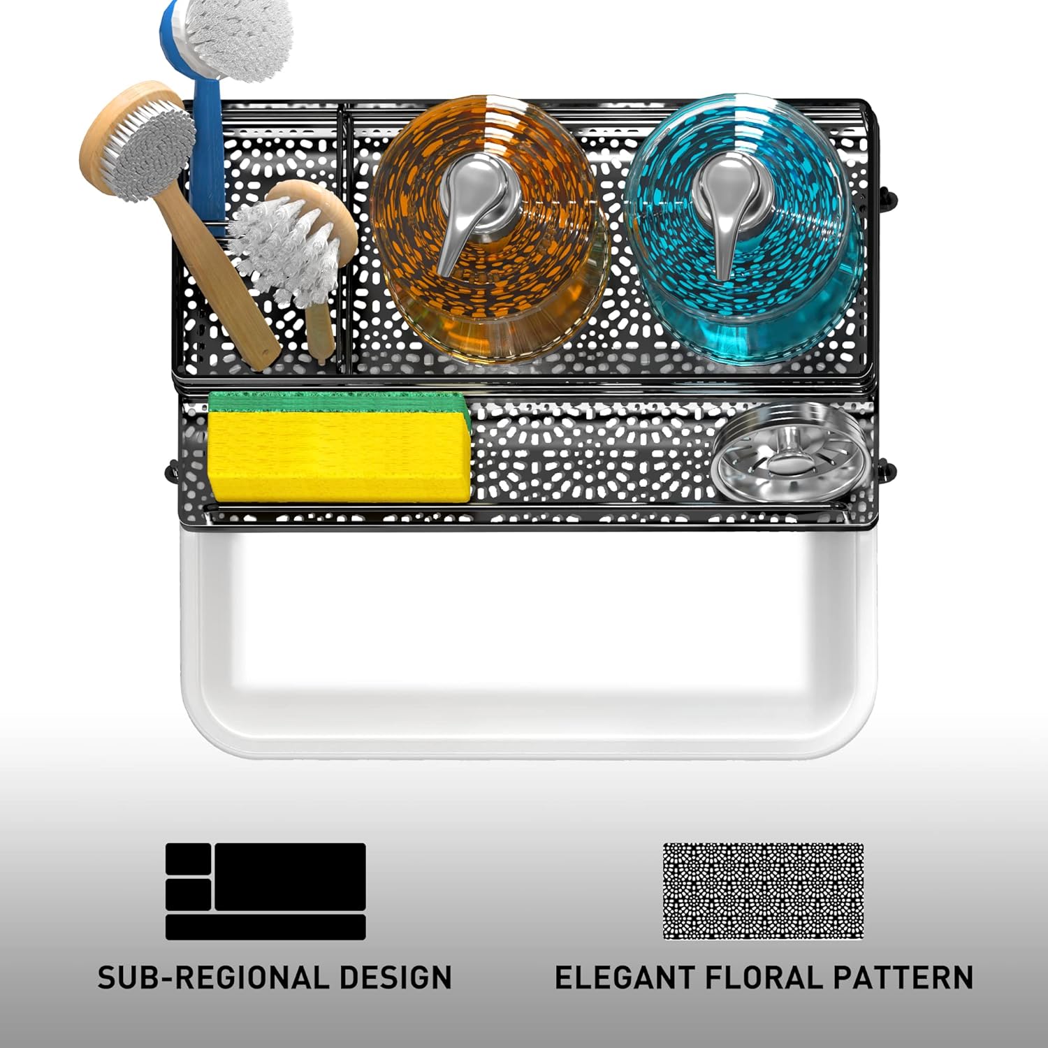 Cisily Large Black Sponge Holder for Kitchen, Sink Caddy Sink Organizer Rack for Kitchen Accessories with Drip Tray, Rustproof and Non-slip, Soap Dispenser Countertop Organizer Essentials for New Home