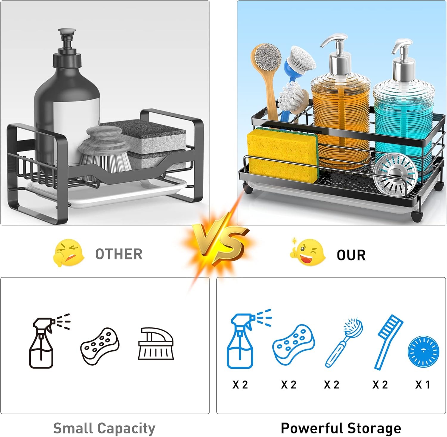 - 【MORE STORAGE SPACE 】Compared to other kitchen sink caddy CISILY sponge holder expands to 5.3 inches wide and 9.49 inches long, enhancing its kitchen organization function, and allowing flexible placement of sponges, dish soap, soap dispensers, brushes, sink plugs and more. Make the most of every inch of space and make your kitchen look cleaner.