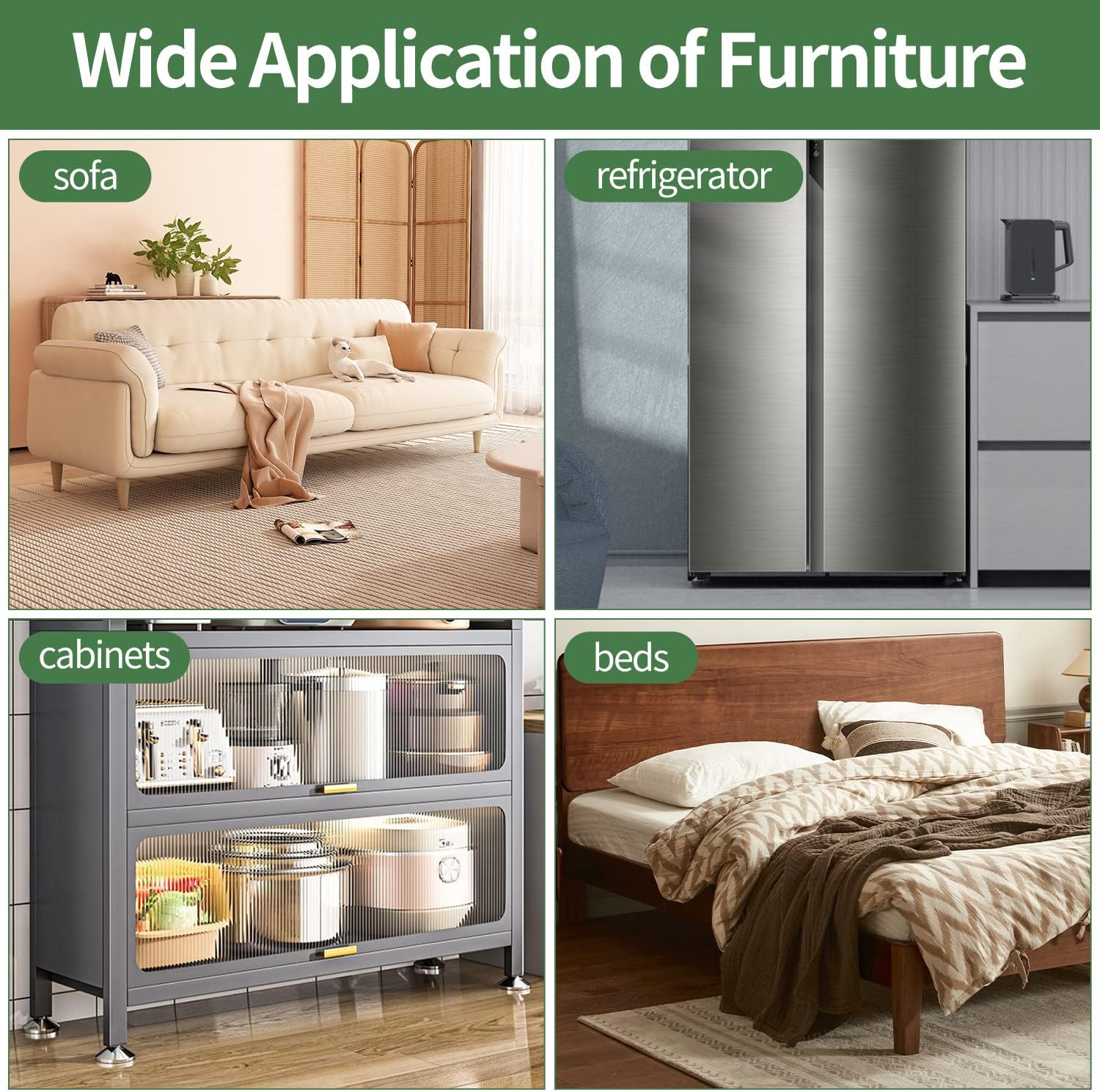 - ❤【Widely Use of Various Furniture】 - Felt furniture moving sliders widely used any furniture legs to move Ideal for Couch, Refrigerator, Tables, Cabinet, Sofas, Beds, Dressers, Recliners, Desk, and much more appliances.