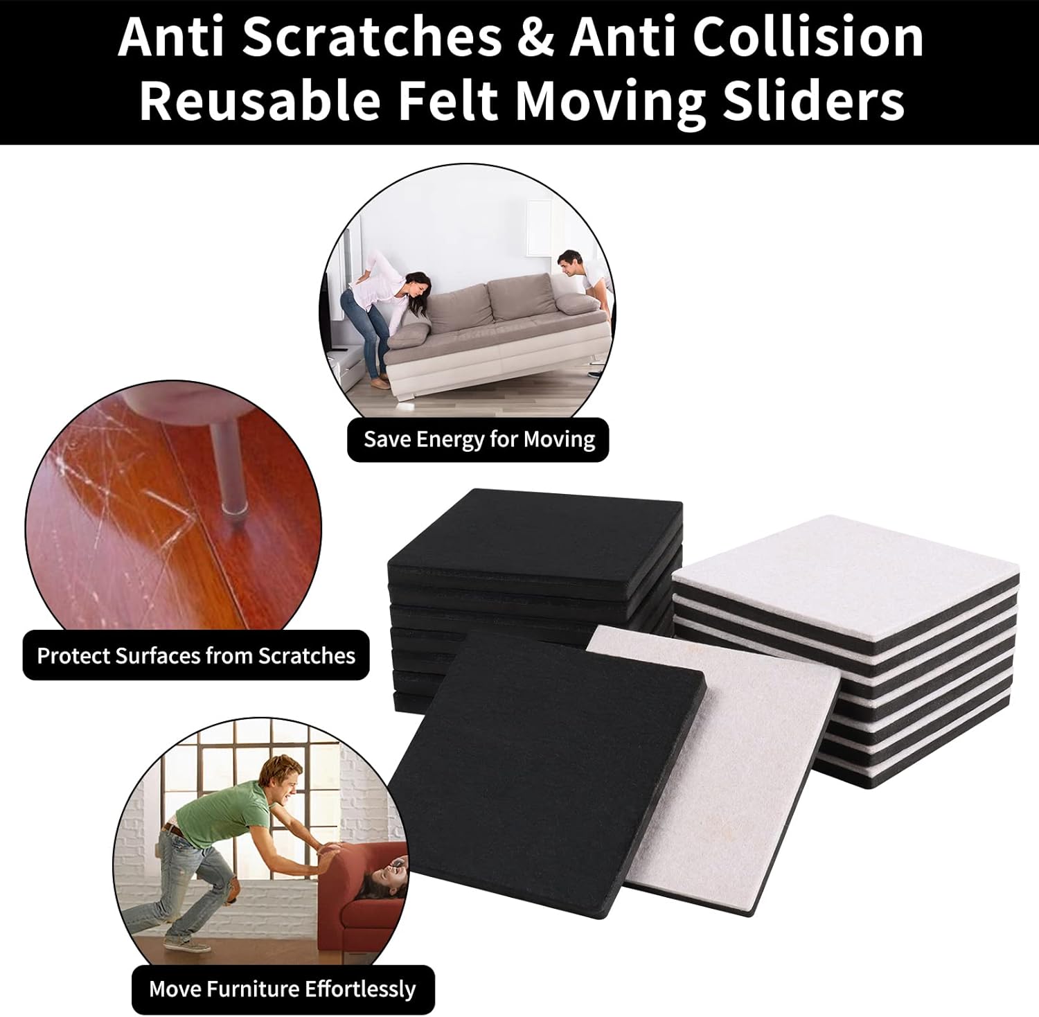 - ❤【Durable Material & Reusable】- Reusable large felt furniture sliders for hardwood floors made of High quality EVA foam and felt pads (non-stick). No need glue to stick and won’t stain your furniture legs and the EVA foam securely grips the furniture for a long-lasting or be removed and reused.