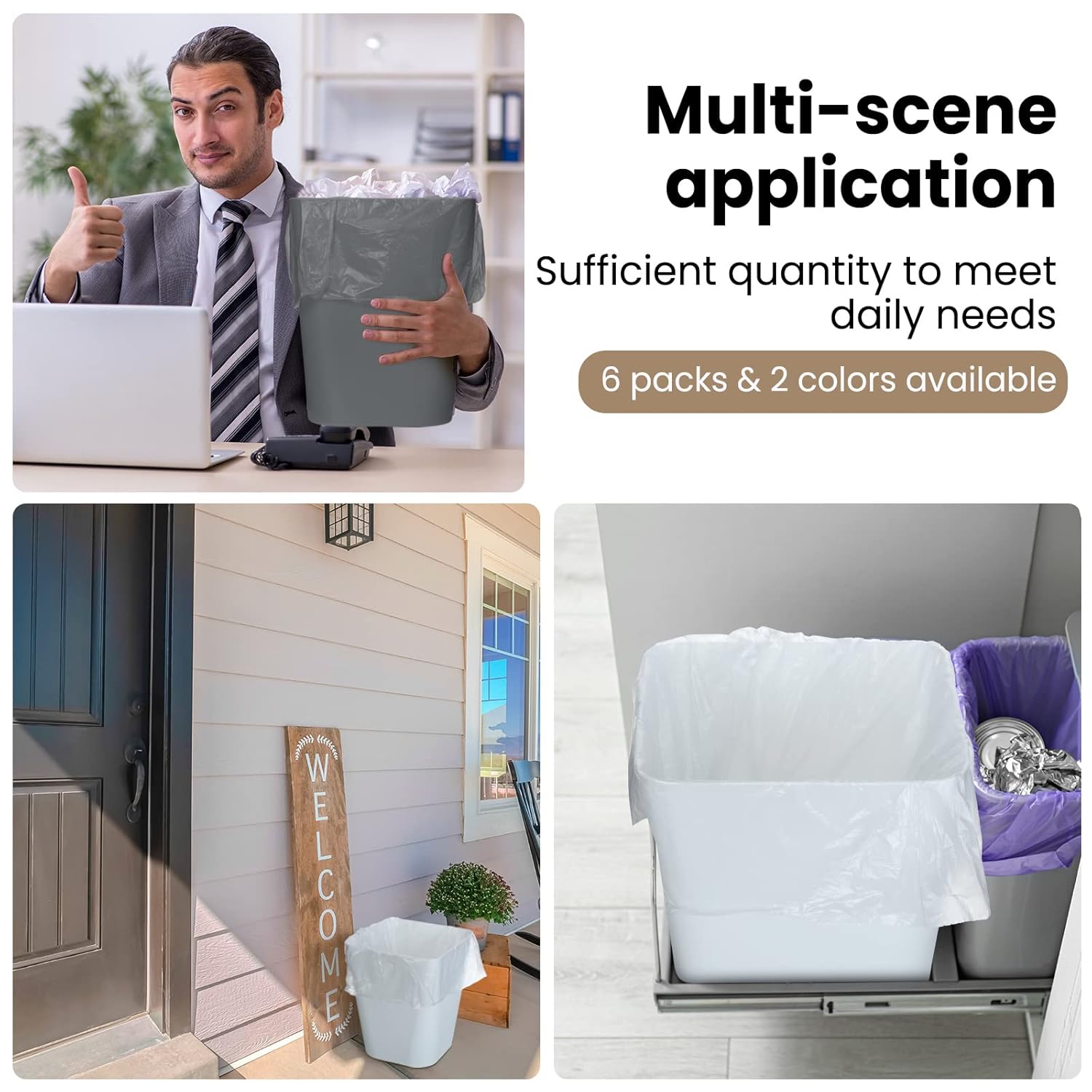 - Sufficient Quantity: the set contains 6 pieces of bathroom trash cans in1.6 gallons and 3 rolls of trash can bags, sufficient quantity and ideal combination can meet your needs for use and replacement, suitable for conference rooms, showrooms, gift shops, offices, shops, bathrooms, bedrooms, kitchens and more