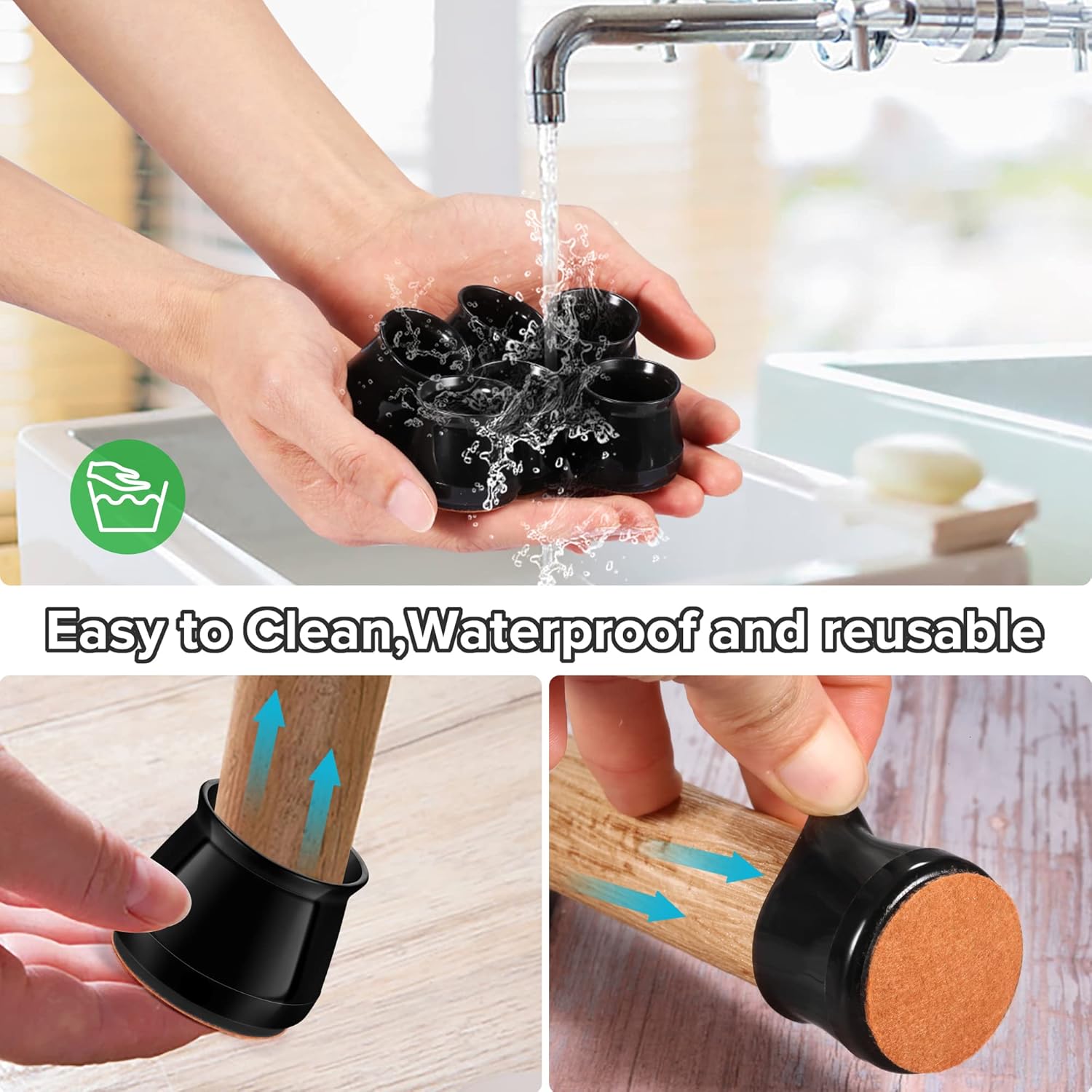 24PCS Upgraded Silicone Chair Leg Floor Protectors for Hardwood Floors, Furniture Sliders for Chair Legs, Felt Bottom Furniture Pads, Anti-Slip Round&Square Cap Covers to Scratch and Reduce Noise