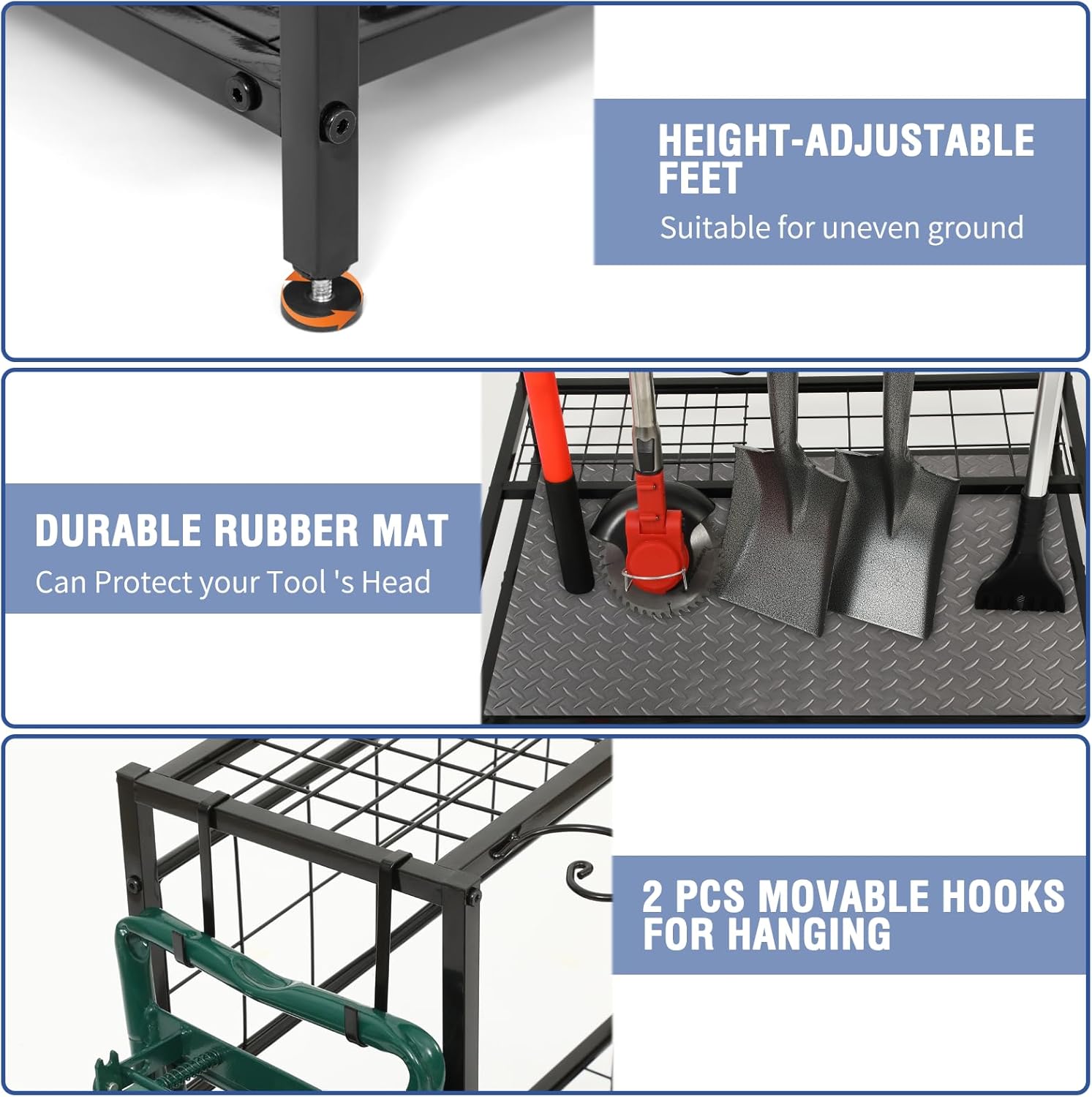 - STRONG DURABLE STEEL CONSTRUCTION: This garage tool rack and shed organizer made of a durable coated steel frame that’s sturdy enough to withstand indoor or outdoor use. The garage organizer offers long-lasting strength and impressive performance, you will not worry about collapsing like plastic organizer