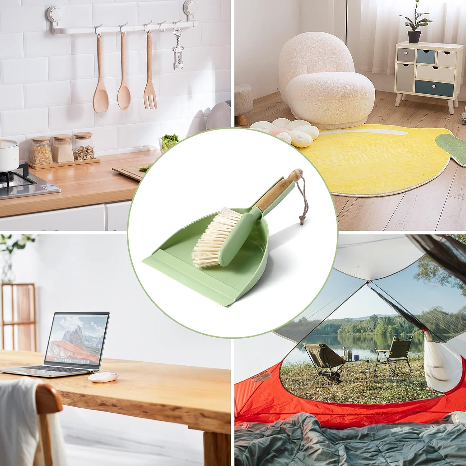 - Versatile Sweep and Pan - The small dustpan and brush set is your ideal cleaning assistant, perfect for pet care, household, kids room, floor, kitchen, sofa, carpets, offices, desktops, keyboards, cars, camping, garage, RV, boat, campout, etc.