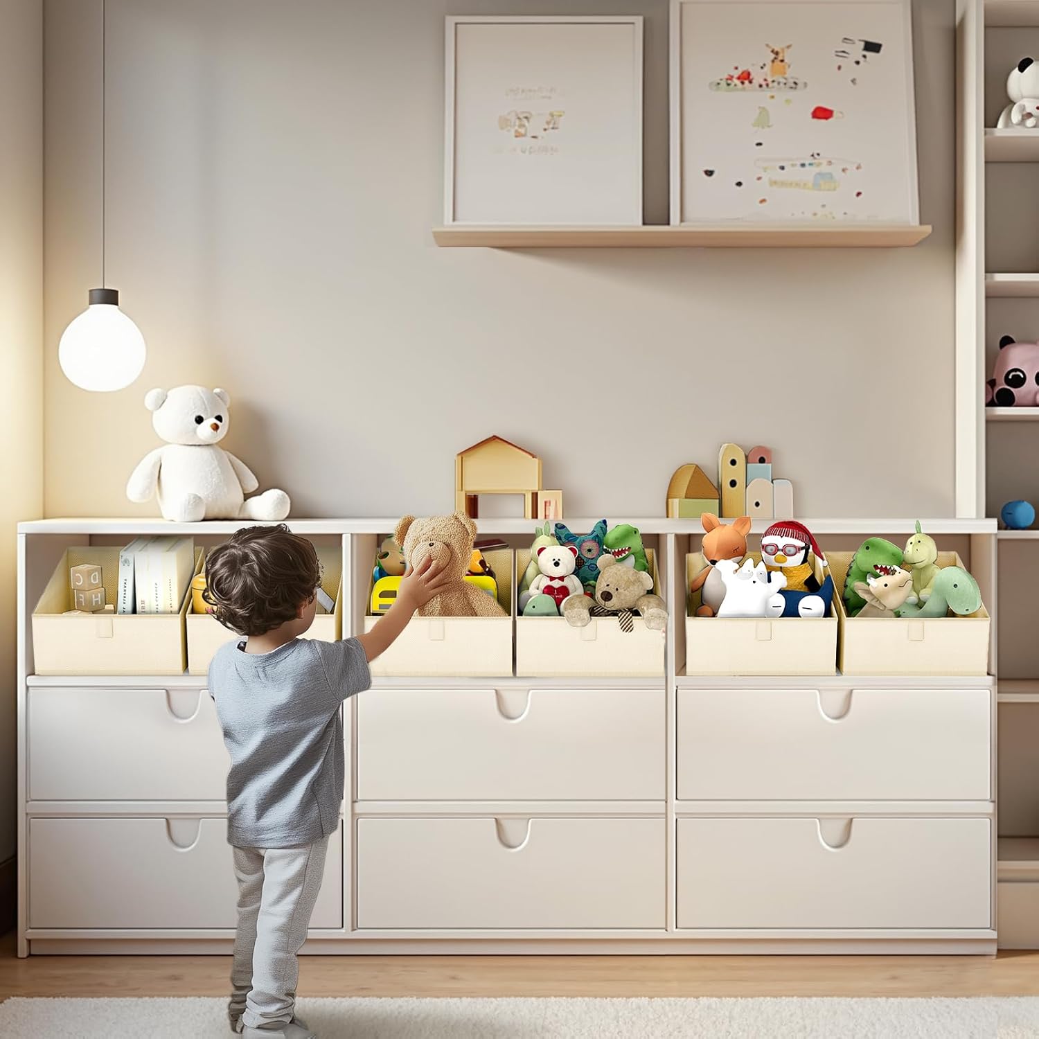 - 【Trapezoidal Design】These storage cubes are Trapezoid design that makes finding things convenient, also allows easy access when putting on the highest shelf. These are ideal closet bins for clothes, bags, shoes, towels, blankets, toys, dolls, and more
