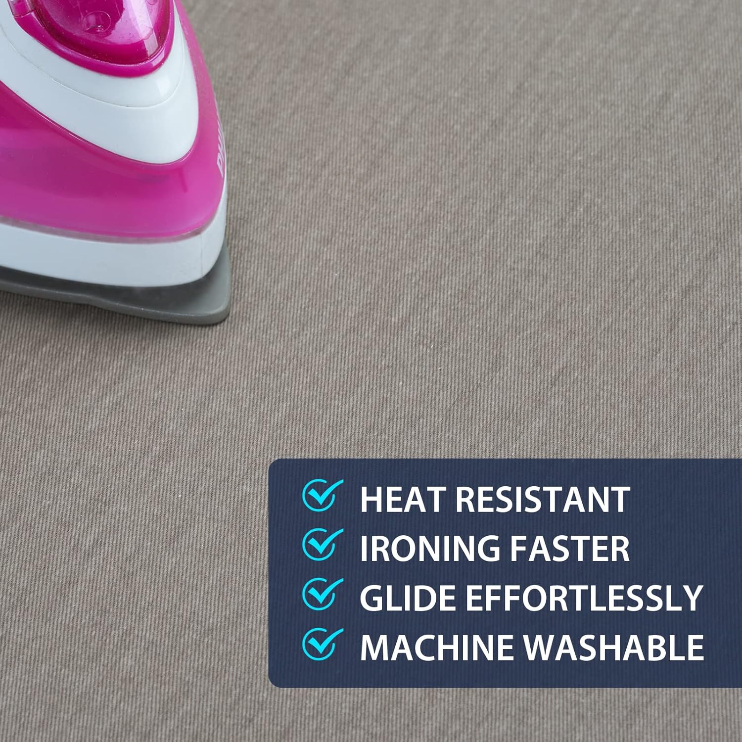 - ELASTICIZED EDGES: The tailor made high quality elastic skirt can firmly fix the ironing cover so that it is tightly attached to the ironing board