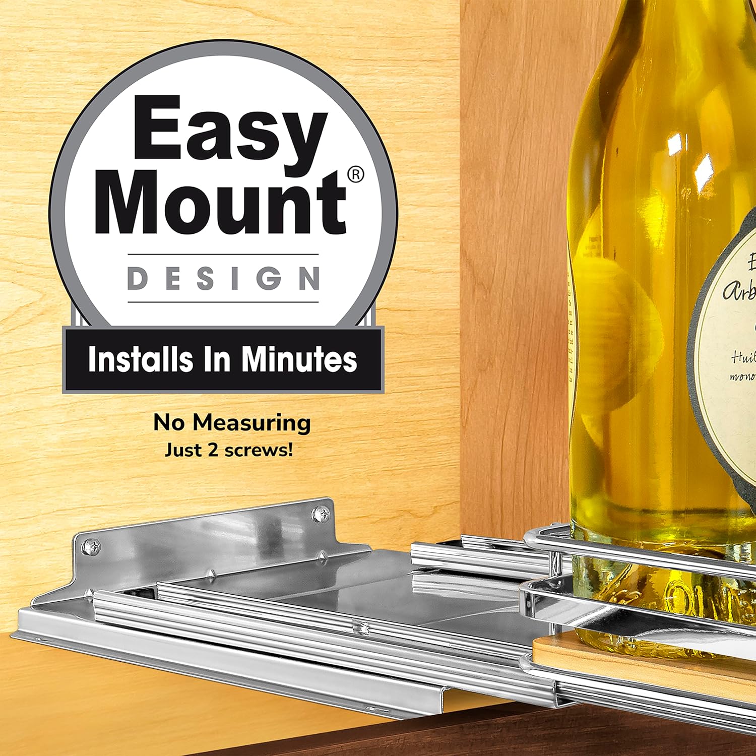 - SETUP IS A BREEZE! – no struggling within limited space trying to place four awkward and difficult to reach screws inside your upper cabinets or into pantry shelves – our exclusive EASY MOUNT cabinet friendly drawer design installs with just two screws in the easily accessible back of your narrow cabinets – in minutes with no measuring!