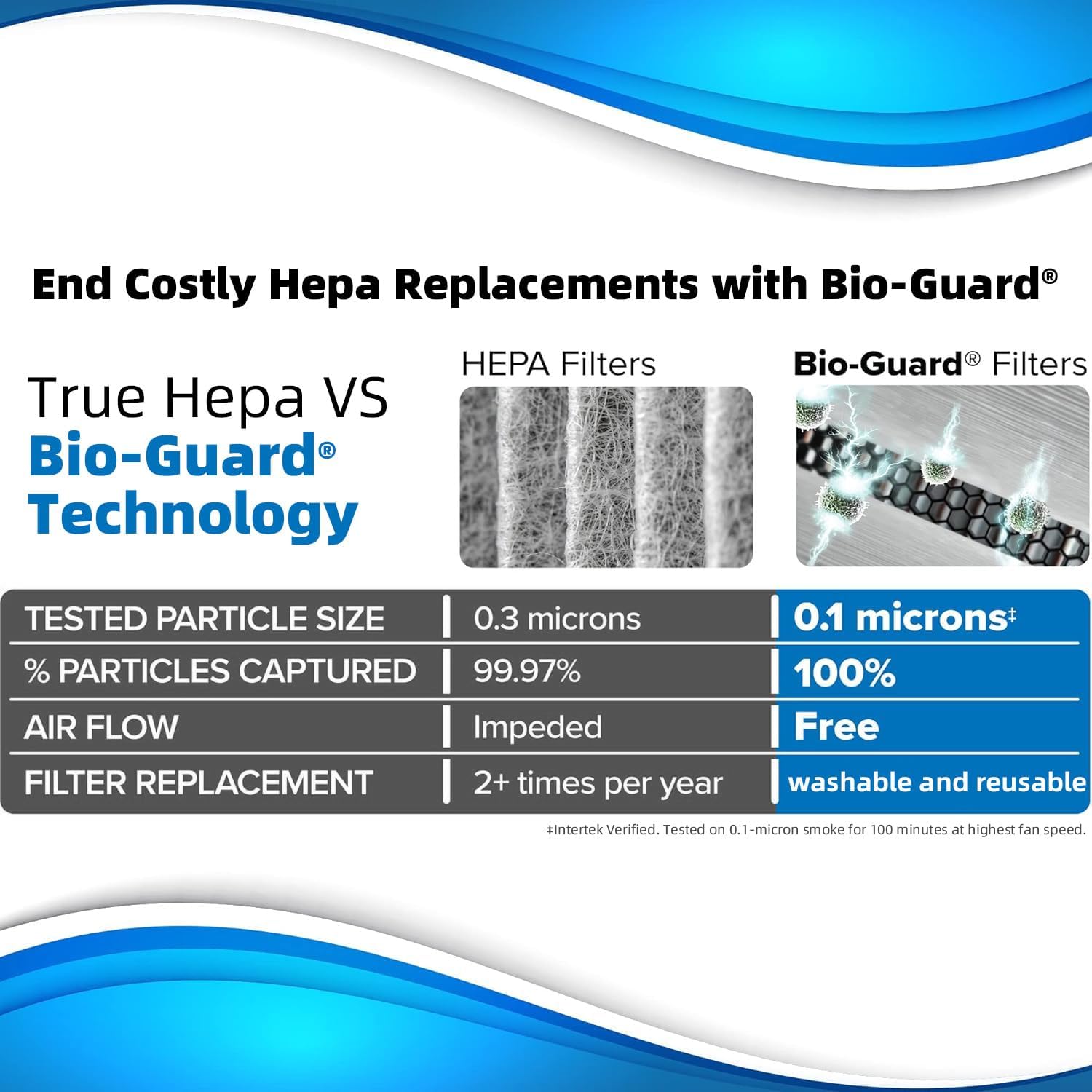 - DUAL 3-STAGE FILTERATION – 2 Stainless-steel prefilter captures large particles. 2 Hi-Tech Bio-Guard Filters & 1 Bio-Guard 360 Filter remove harmful airborne particle pollutants and odors.