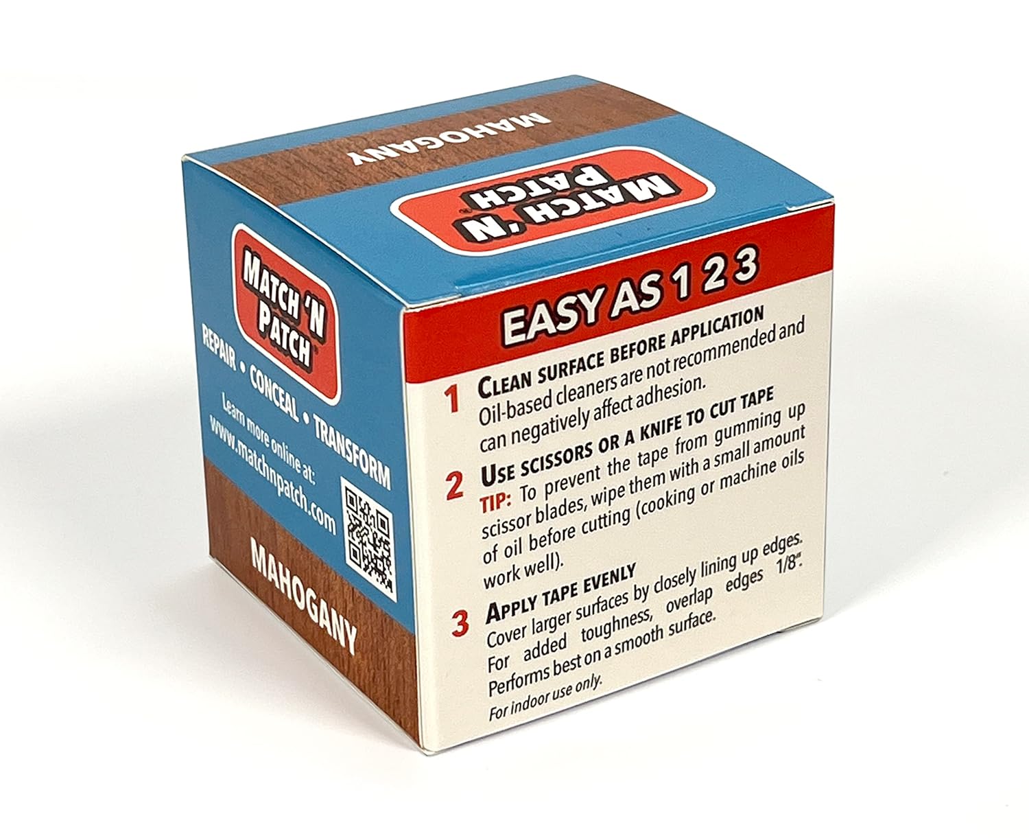 - MATCHING OPTIONS AVAILABLE: The Mahogany pattern is part of a broader collection. Visit the MATCH ’N PATCH Store to explore all 13 wood tape shades and find the perfect match for your project.