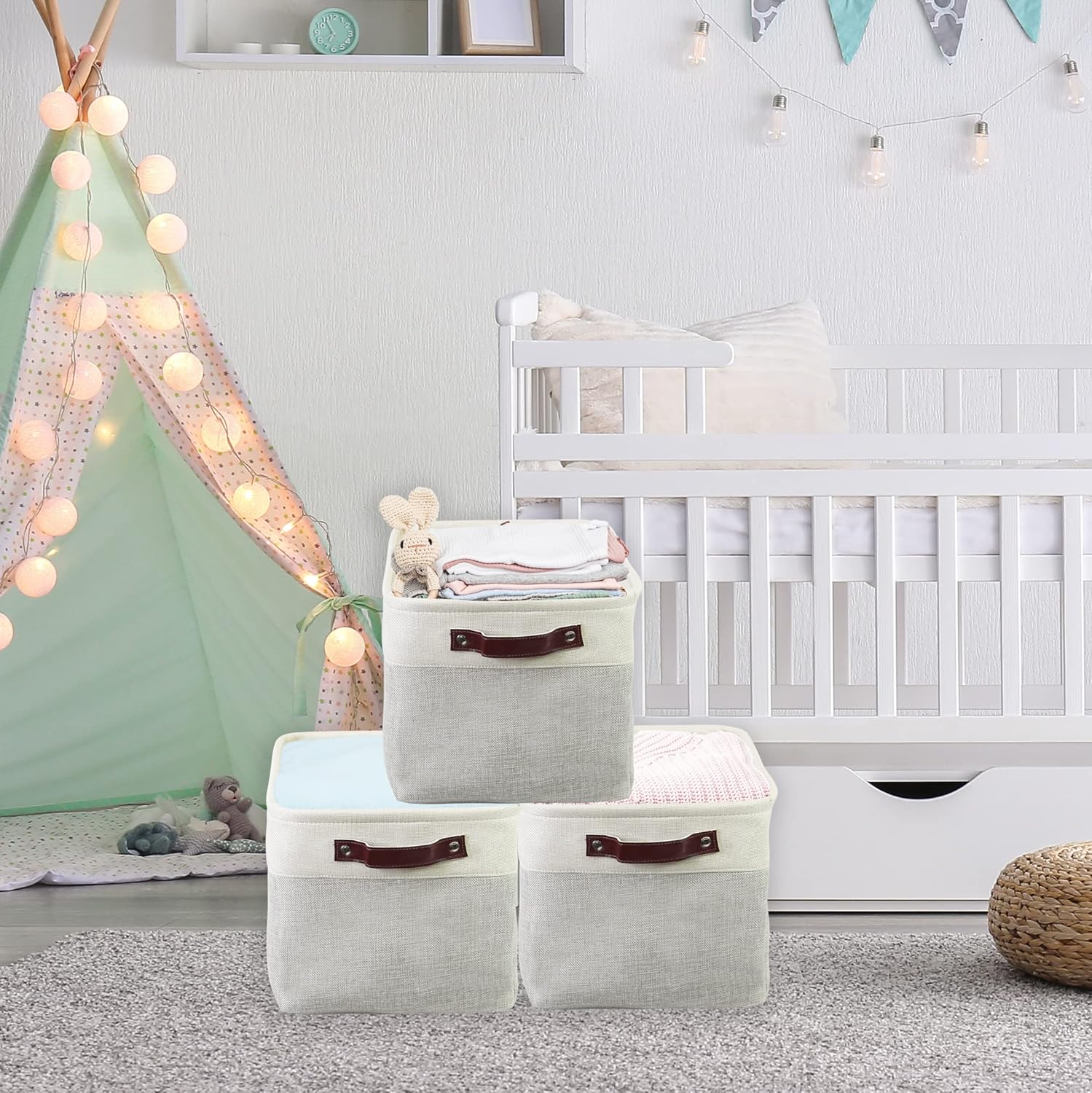 - Durable Material: Linen upper with EVA baking and reinforced bottom base for bins keep its shpae while staying soft