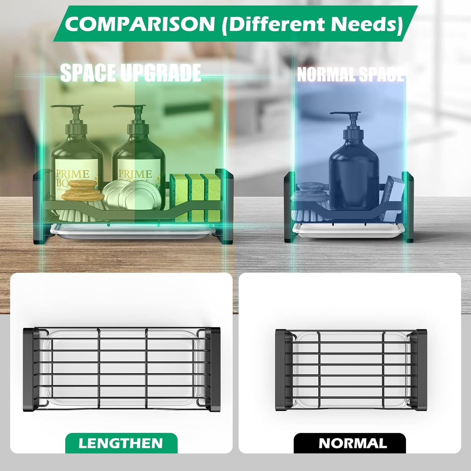 - 【Larger Capacity】Extended to 4.3 inches in width and 9.2 inches in length. Compared with other kitchen sink sponge holder , the length and width are improved. Therefore, this sponge holder can bring more storage space and improve the storage capacity. The Kontoyo sponge holder is perfect for storing sponges,dish soap,soap dispenser,brushes. Keep your kitchen sink counter clean and tidy