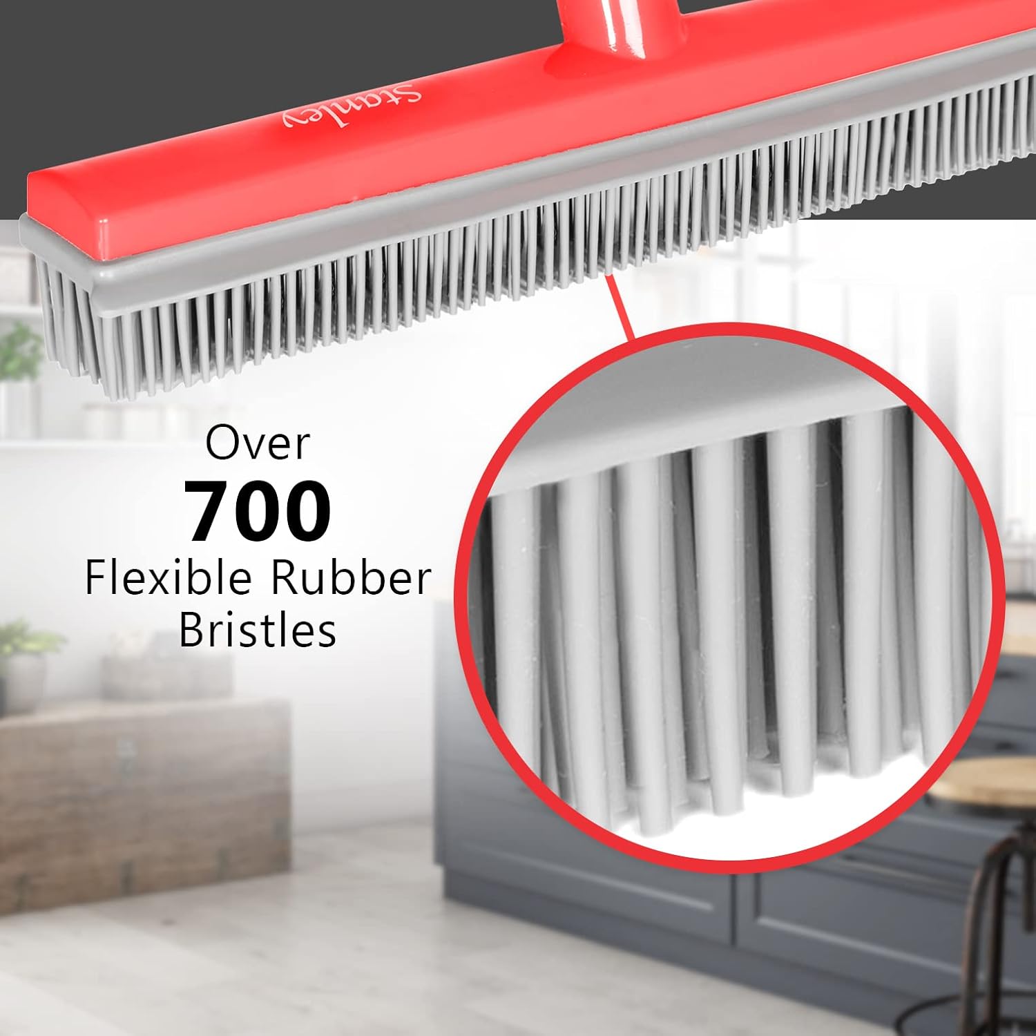 - OVER 700 FLEXIBLE RUBBER BRISTLES: Our Stanley Rubber Broom contains over 700 flexible rubber bristles to thoroughly grab, hold and remove hair, fuzz and lint (when PULLED toward you). These rubber bristles are completely washable with mild soap and water.