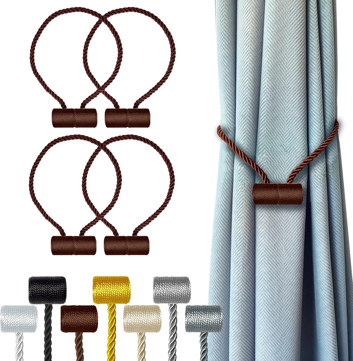 Hion Magnetic Curtain Tiebacks Dark Brown 4 Pack, Curtain Tiebacks Buckles Holdbacks Holders Hooks Clip for Home Bedroom Office Decorative Thick or Thin Curtain