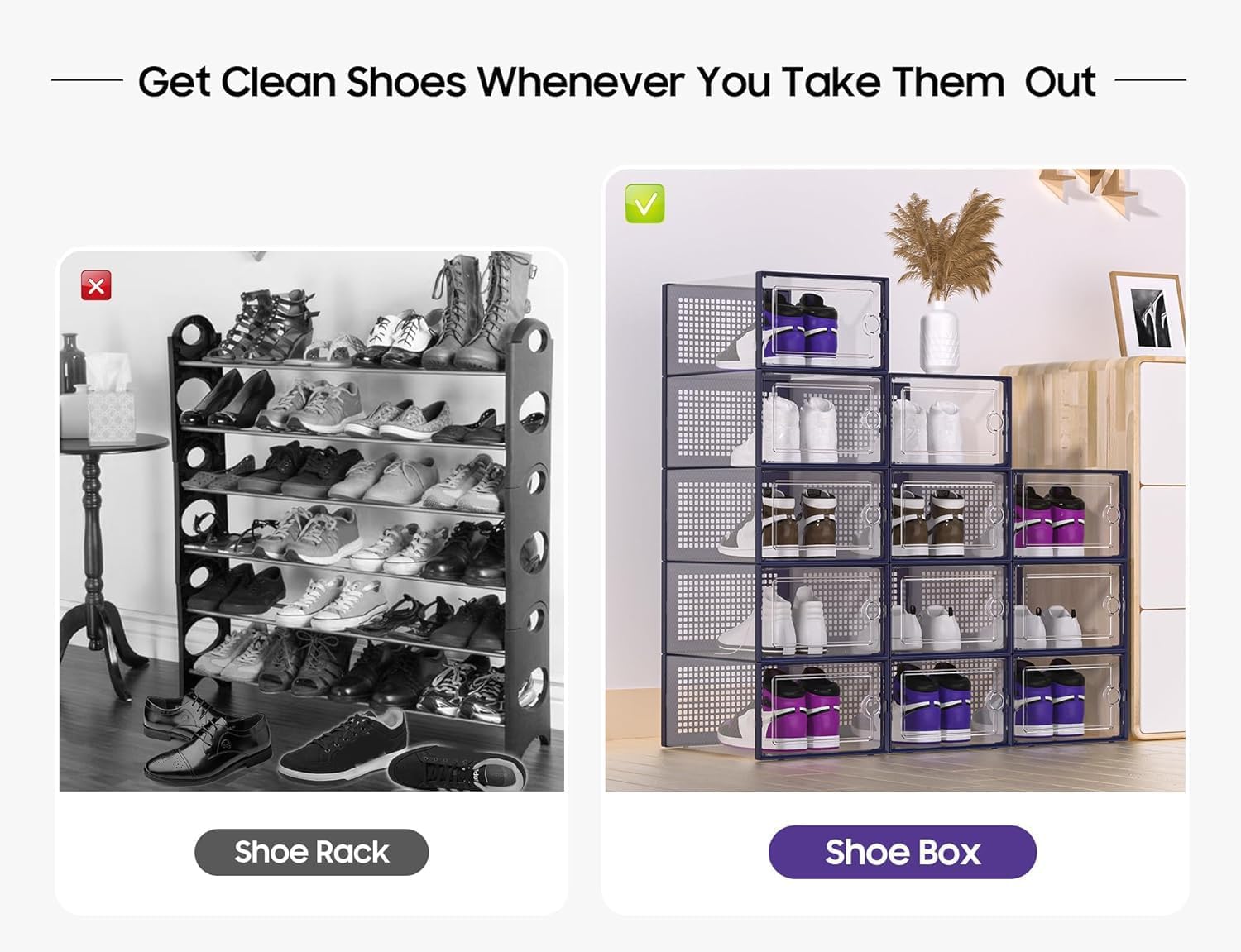 - Shoe Organizer Solutions: More dustproof than shoe racks, ventilated and breathable than shoe cabinets