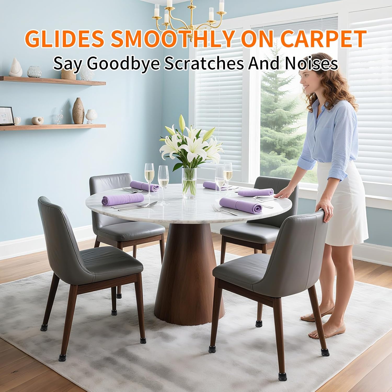 - ☛【Quiet Smoothly Glides】- Chair legs sliders is upgraded and thickened bottom made of ultra-smooth teflon material for smooth and resistance-free moving table leg covers on carpet. Table Foot Protector Sliders with easy to move without noises.