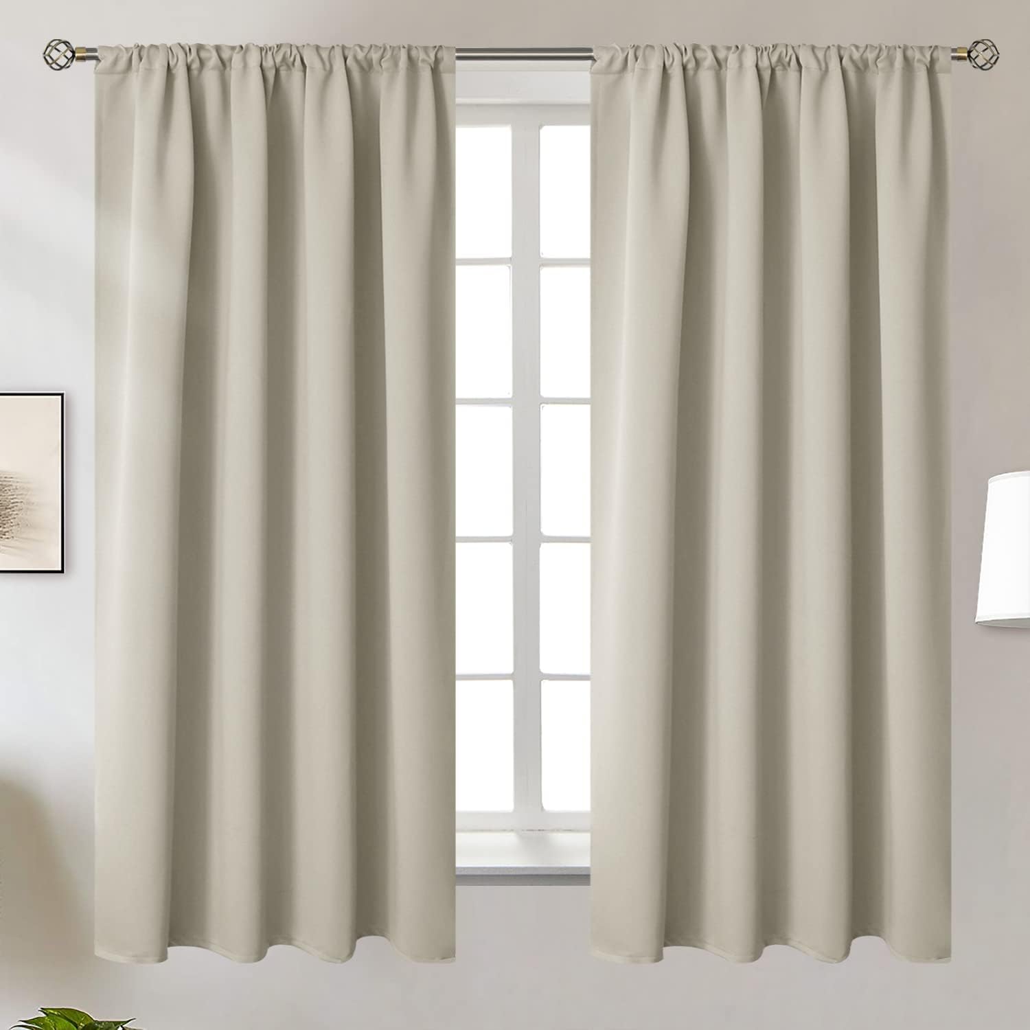 - Package Includes: Set of 2 light camel blackout curtains; each panel measures 52 Inch wide by 63 Inch long.