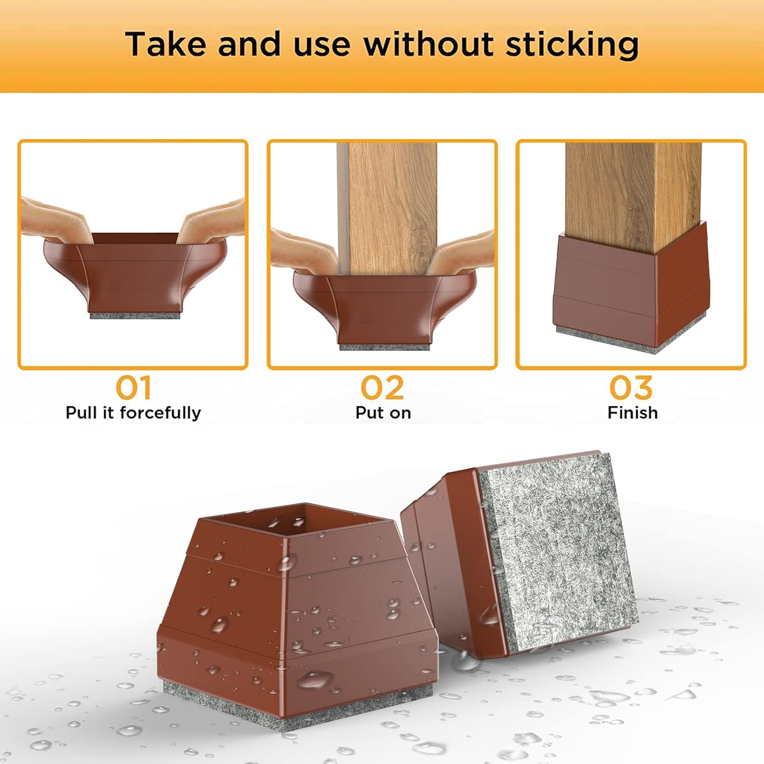 - Easy to install: Chair Leg Protectors can easily stretch to fit over furniture legs. Just slip them over your chair legs, and they’ll fit snuggly to stay in place! No tools needed and no chair foot cleaning needed.If silicone furniture protectors for chair legs is dirty, you can remove it and wash it and use it multiple times.