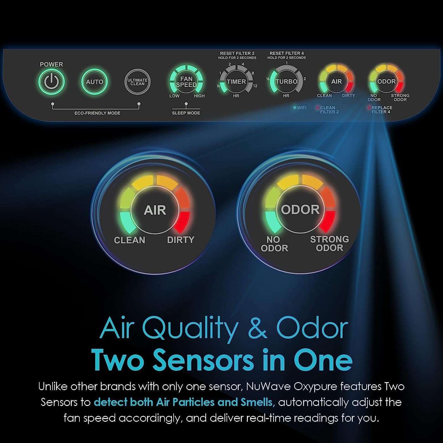 - NIGHT-TIME SLEEP MODE - OxyPure is designed with Night-Time mode. All indicator lights turn off and fan operates at whisper-quiet level at 31.4 dB to help promote ideal sleeping conditions.