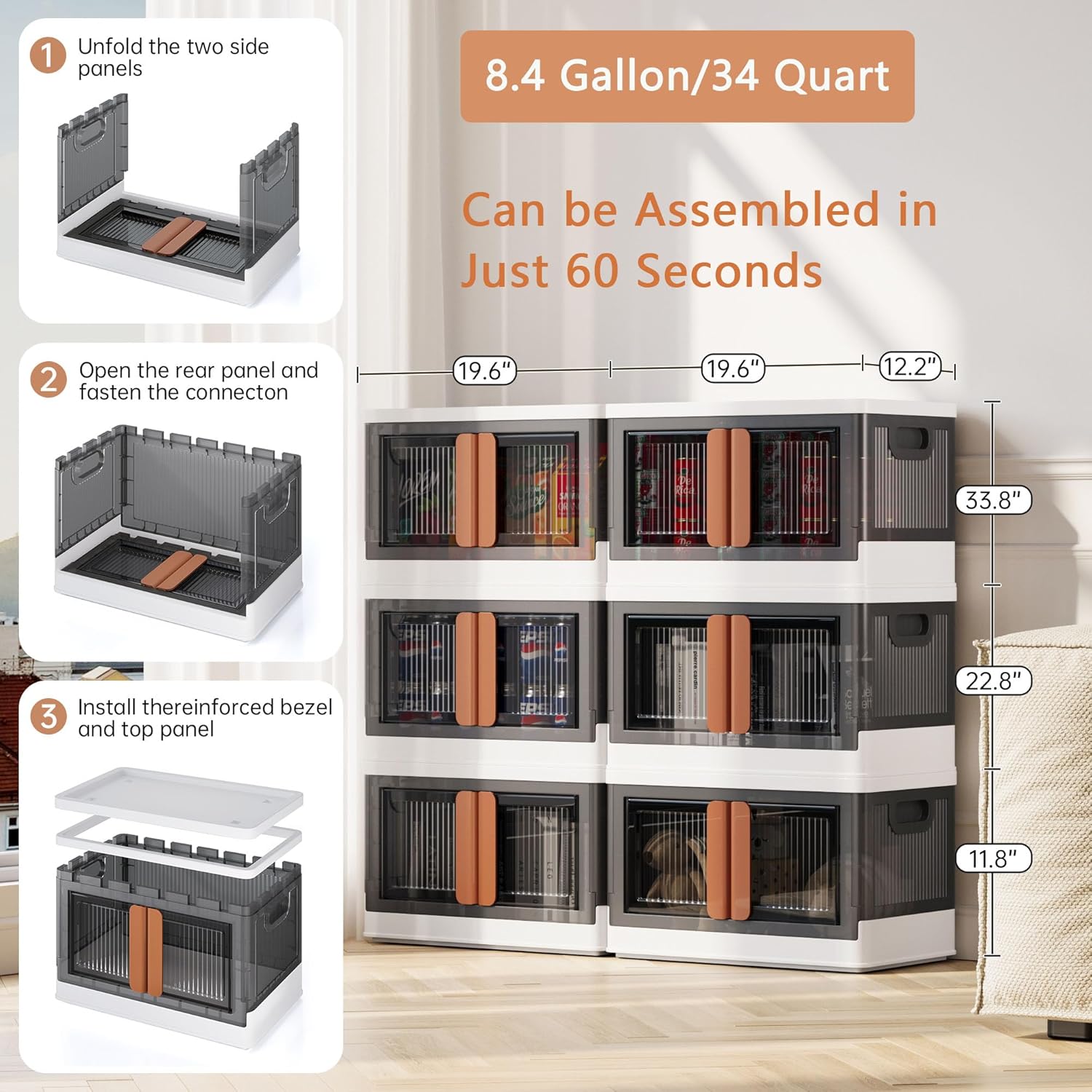 - Multi-Scenario Storage: These versatile storage bins are suitable for organizing clothes, toys, crafts, beddings, books, snacks, and other miscellaneous items. 8.4-gallon super capacity (34 quarts) - holds 28 x 500mL bottles (Tested)