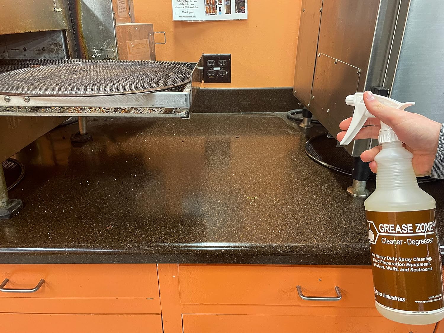 - Removes all fat and protein-based soil on all food preparation surfaces.