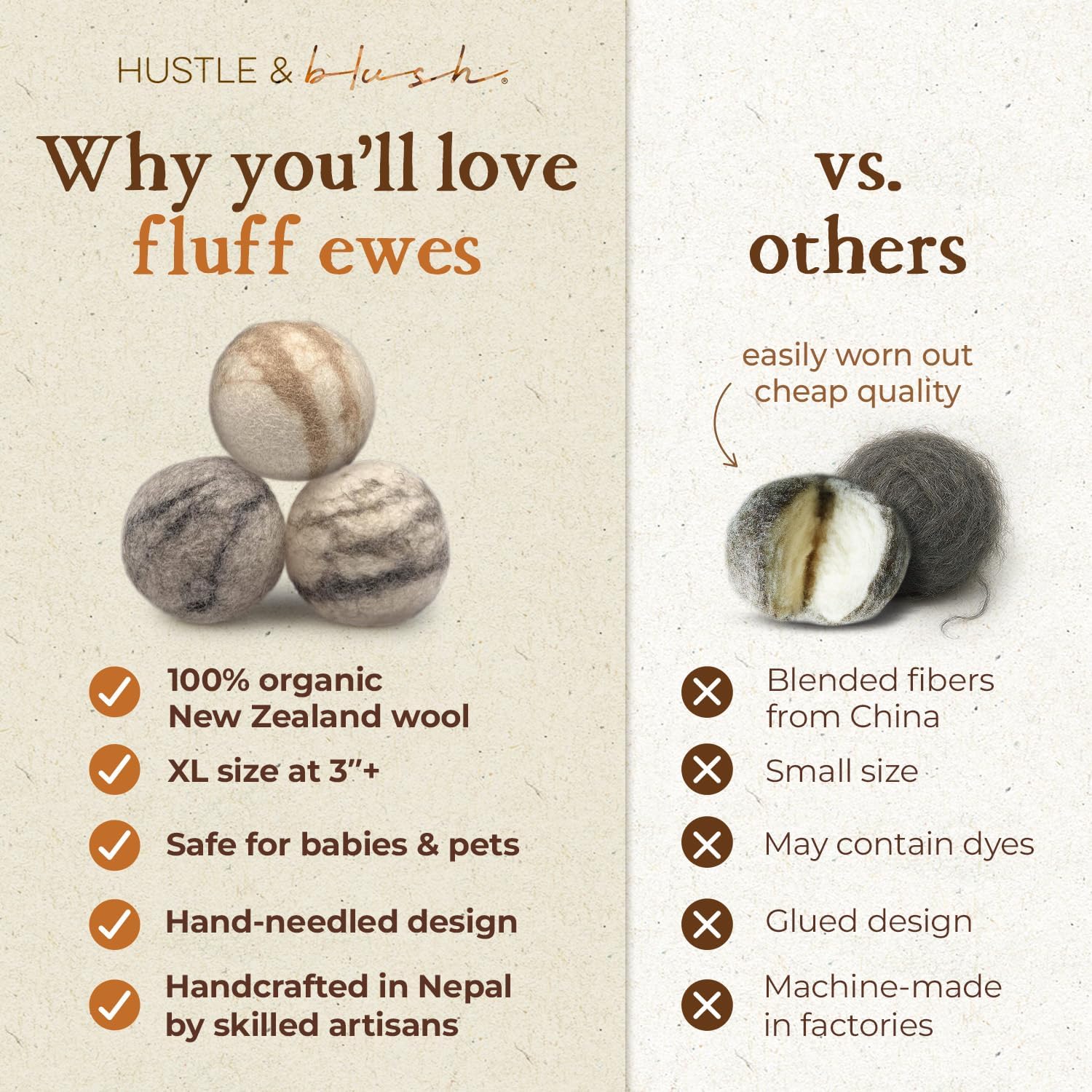 - NATURAL AND SAFE FOR SENSITIVE SKIN: Protect your family with these wool dryer balls made from 100% premium New Zealand wool. Great for baby clothes and delicate fabrics, these fragrance-free dryer balls wool cute option keeps laundry soft without harsh chemicals. Feel confident using them if you have sensitive skin for safer, healthier laundry.