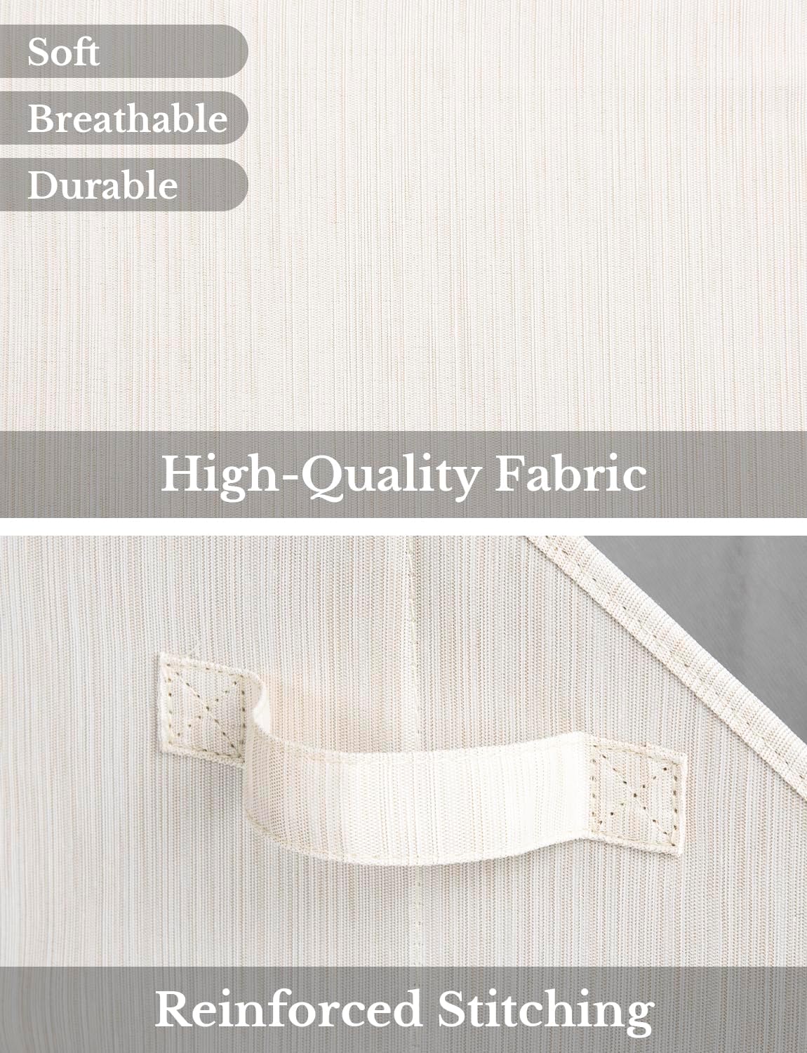 - The bottom board is sewn to the side of the shelf bin, making it easy to assemble and easily collapsible when not in use.