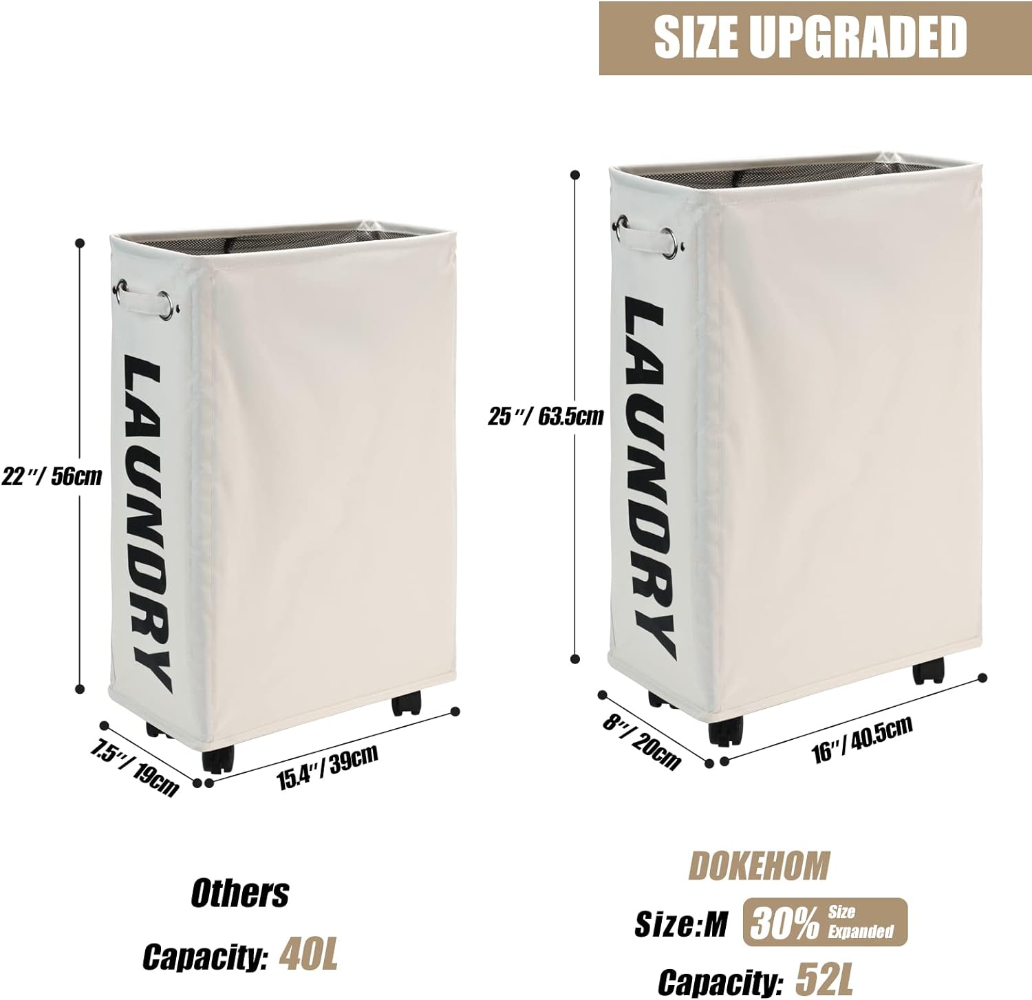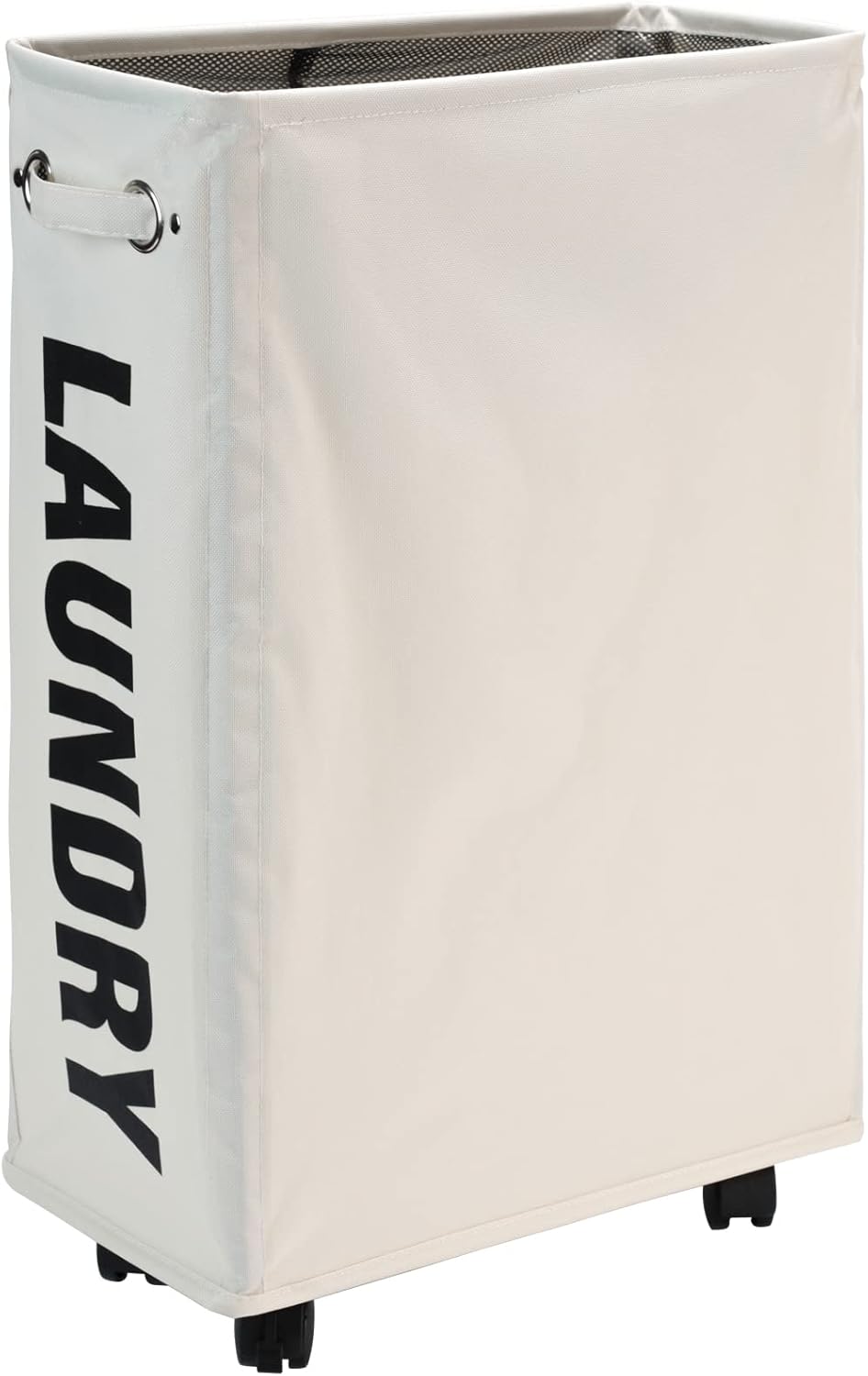 DOKEHOM 25-Inches Slim Laundry Basket on Wheels, Collapsible Rolling Laundry Hamper, Foldable Narrow Corner Clothes Storage Bins (Beige)