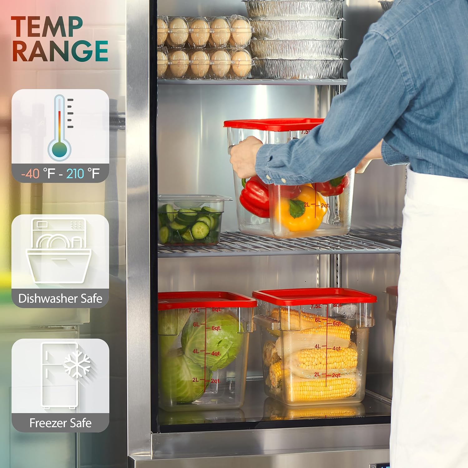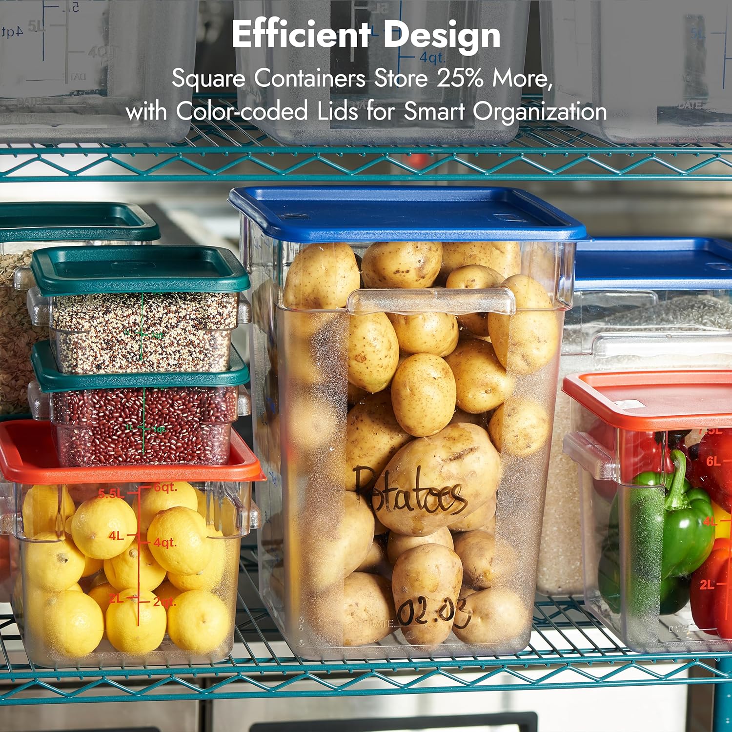 - Keep Food Fresh - When paired with the included bright blue polypropylene lid, it keeps food fresher, longer, than when covered with traditional foil or plastic wrap. This food storage set is suitable for use in restaurants, caterers, delis, and cafes and can be used to store freshly-chopped fruit salad, sliced vegetables, soup stock, or stew.