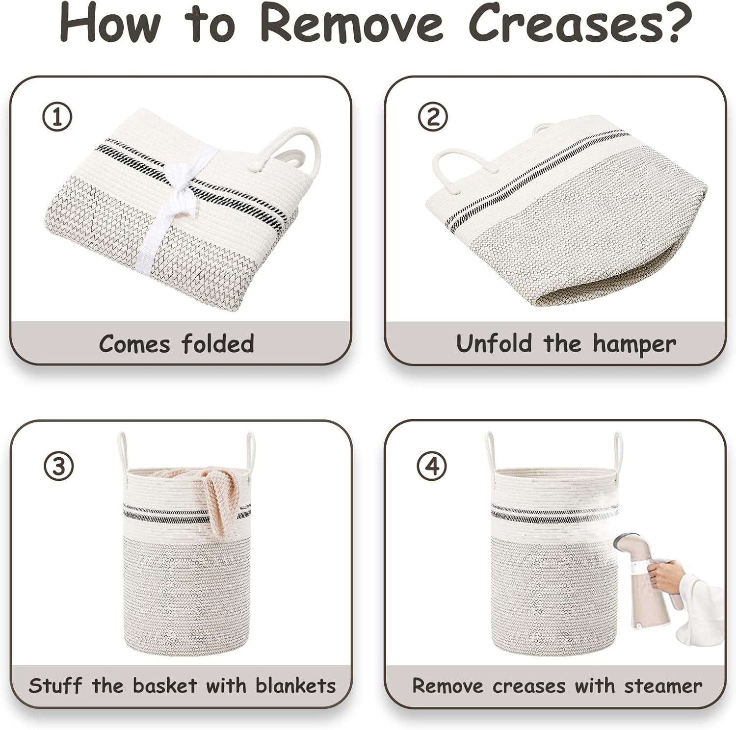 - ❤【Restore Elegant Shape】 To improve shipping efficiency, foldable woven rope hampers are packed compactly. You can put some blankets or small quilts in it and give it some time to regain its shape. Iron is a great idea to remove the creases.