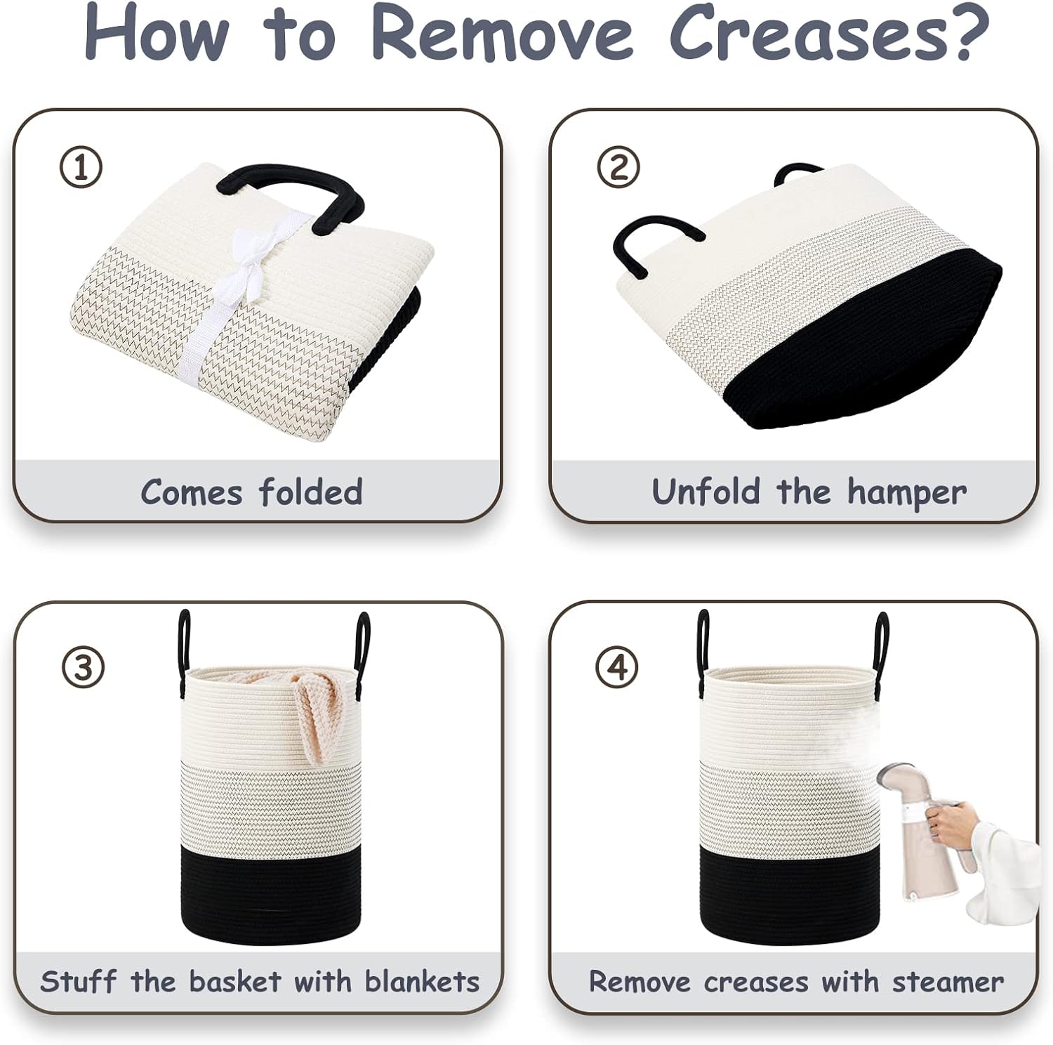 - ❤【Restore Elegant Shape】 To improve shipping efficiency, foldable woven rope hampers are packed compactly. You can put some blankets or small quilts in it and give it some time to regain its shape. Iron is a great idea to remove the creases.