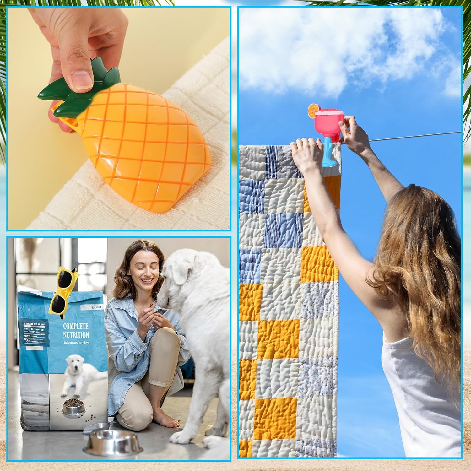 - Cute and Funny: the decorative beach towel clips adopt champagne glass, lemon glass, sunglasses, pineapple styles, look cute and funny, you can use them to clip clothing, towels, and bedding
