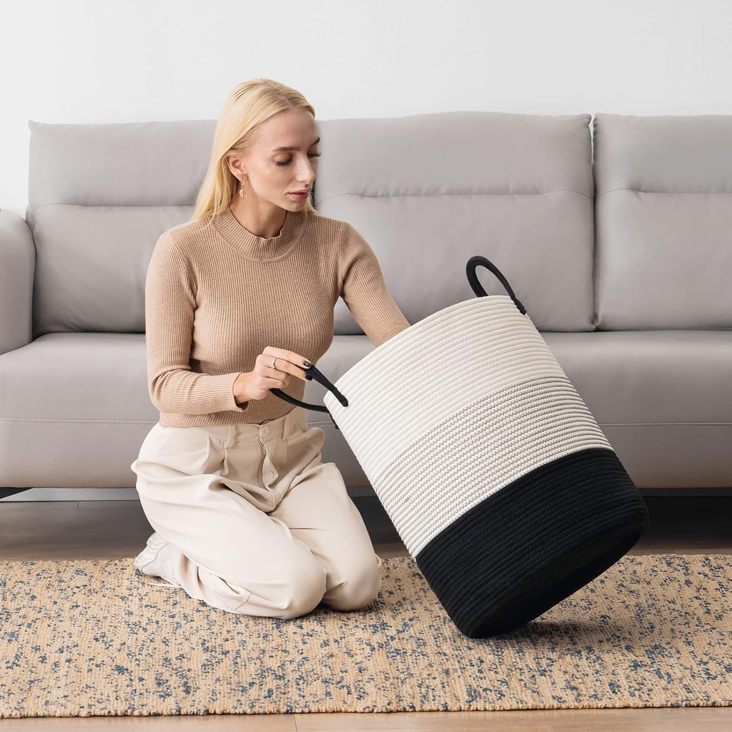 - 【Multipurpose Storage Baskets】58L capacity basket can keep things organized in a stylish and decorative way. You can use them to store extra towels, blanket, clothing, toys for baby and dogs, books, pillows or any other household items around the house, anything you can imagine