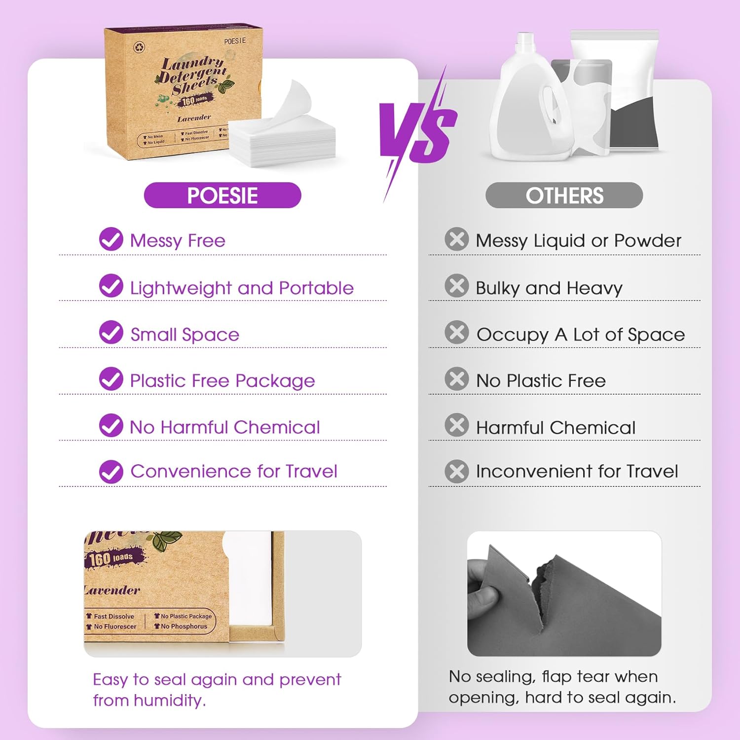 Poesie Laundry Detergent Sheets Lavender Scent 160 Count Soap Sheets Non-Plastic Hypoallergenic Portable Liquidless HE Washing Detergent Strips for Save Place Traveling No Waste