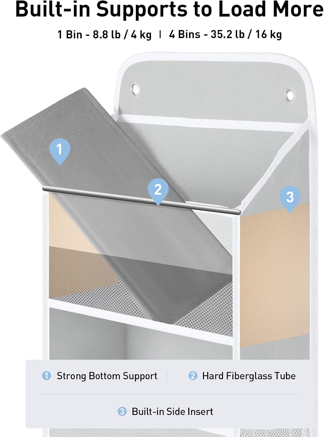 - Swing-proof & 35.2 LB Load Capacity: Yecaye behind the door storage stands out for its innovative design and durability. The organization and storage shelves features strong stitching to connect the pockets, built-in side cardboards, reinforced bottom inserts, and fiberglass tubes to prevent sagging and leaning. These features ensure that the newborn essentials must haves can keep in shape and can hold up to 35.2 lbs with ease