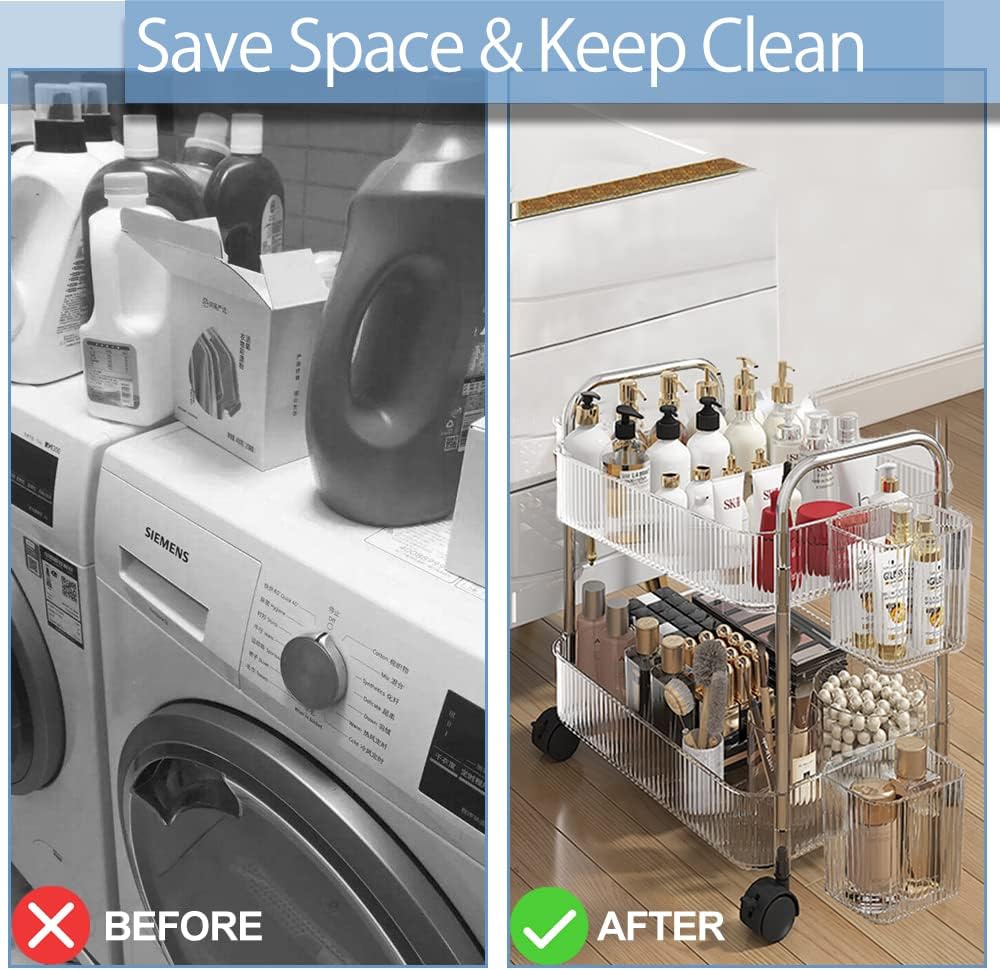 - 👍【Stylish Design & Long Lasting Durability】: Stylish design (clear basket bins and stainless steel tubes) is decorative for anywhere and it will bring a good view to you. The storage organizer rolling cart is made of high quality plastic and stainless steel material, which is well-constructed, sturdy and durable to use for many years.