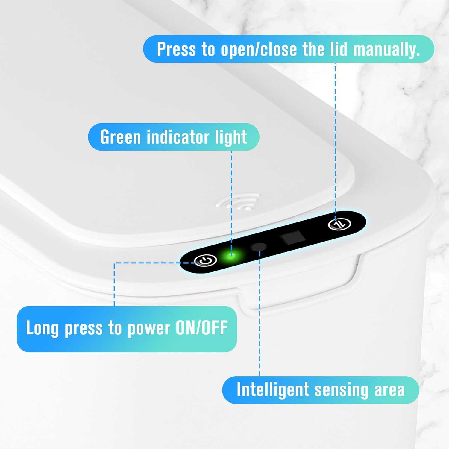 - Designed for Narrow Spaces: Our smart trash can has a slim shape that makes it a fit in a bathroom or wherever space is tight. Are you still annoyed that the narrow space in the room is being wasted? Use it to improve your space utilization