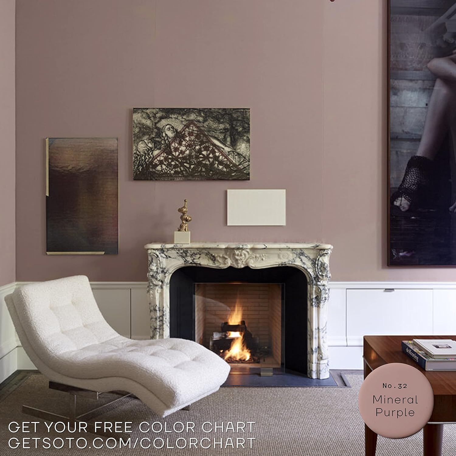 - No. 32 Mineral Purple — An earthy, brownish purple. *** We cannot guarantee an exact color match based on monitor representation alone due to variances in lighting, devices, and screens. Please order a Color Chart of the actual paint colors to determine your match before you order (or contact us for details). ***