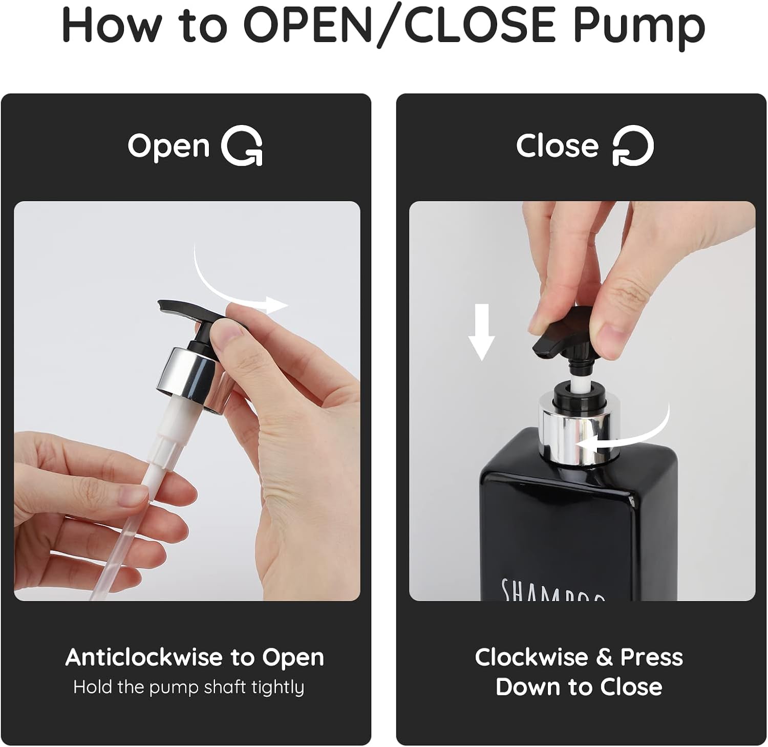 - 【Easy to Refill and Use】Remove the pump head and refill lotion with the wide mouth. Gently press the pump head to dispense it.