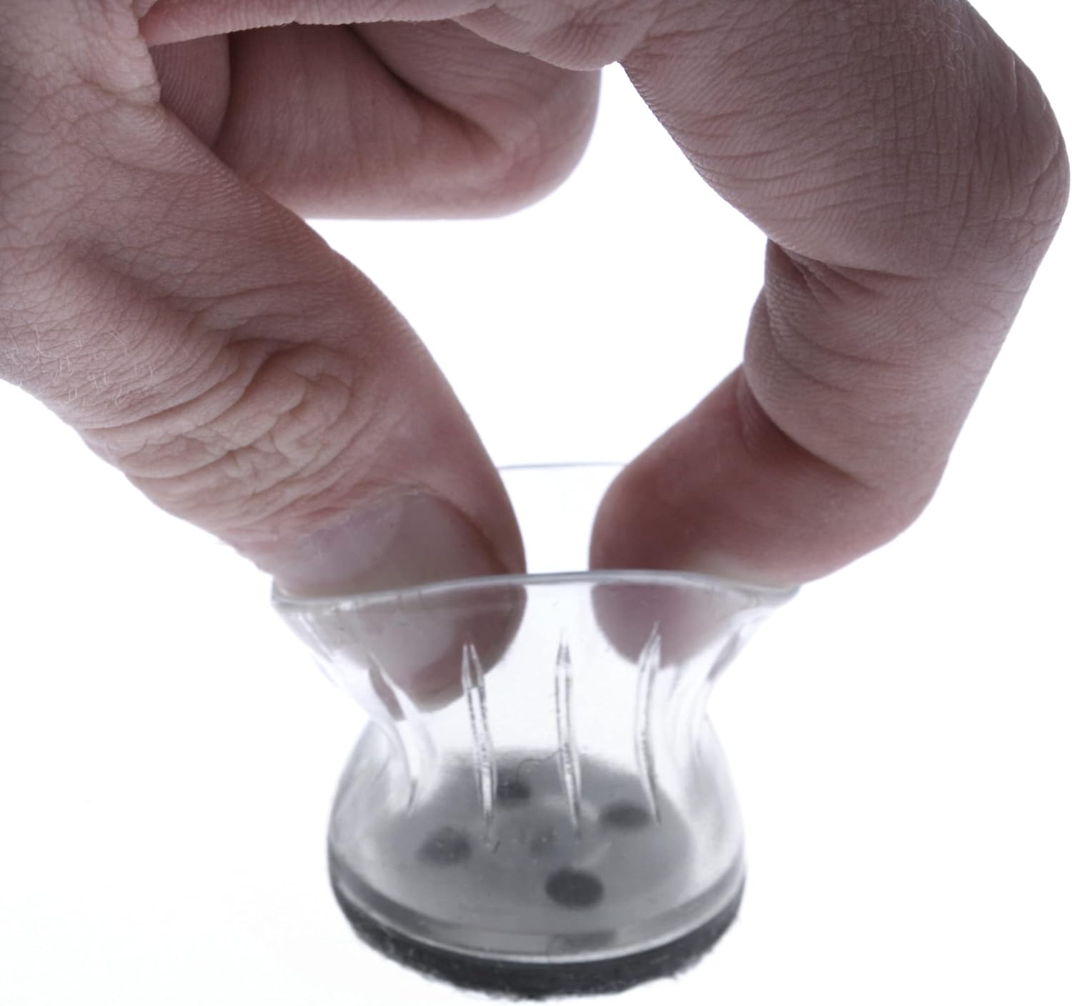 - Fits round & square furniture legs – These stretch to fit chair pads securely fit round legs 15/16” to 1-1/8” in diameter (23 – 29mm) and square legs 7/8” to 1-1/16” in diameter (22 – 27mm). The tube that holds the furniture leg is made of an advanced polymer material that is strong, tear resistant, long lasting, and clear.