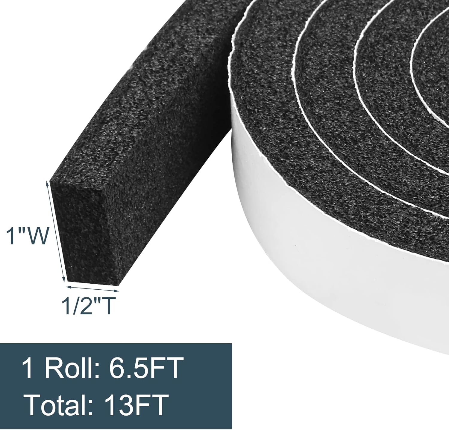 YIJUHOU Weather Stripping Door Seal Window Air Conditoner Insulation Foam Seal Tape Black Open Cell Door Seal Strip (1IN*1/2IN*13FT)