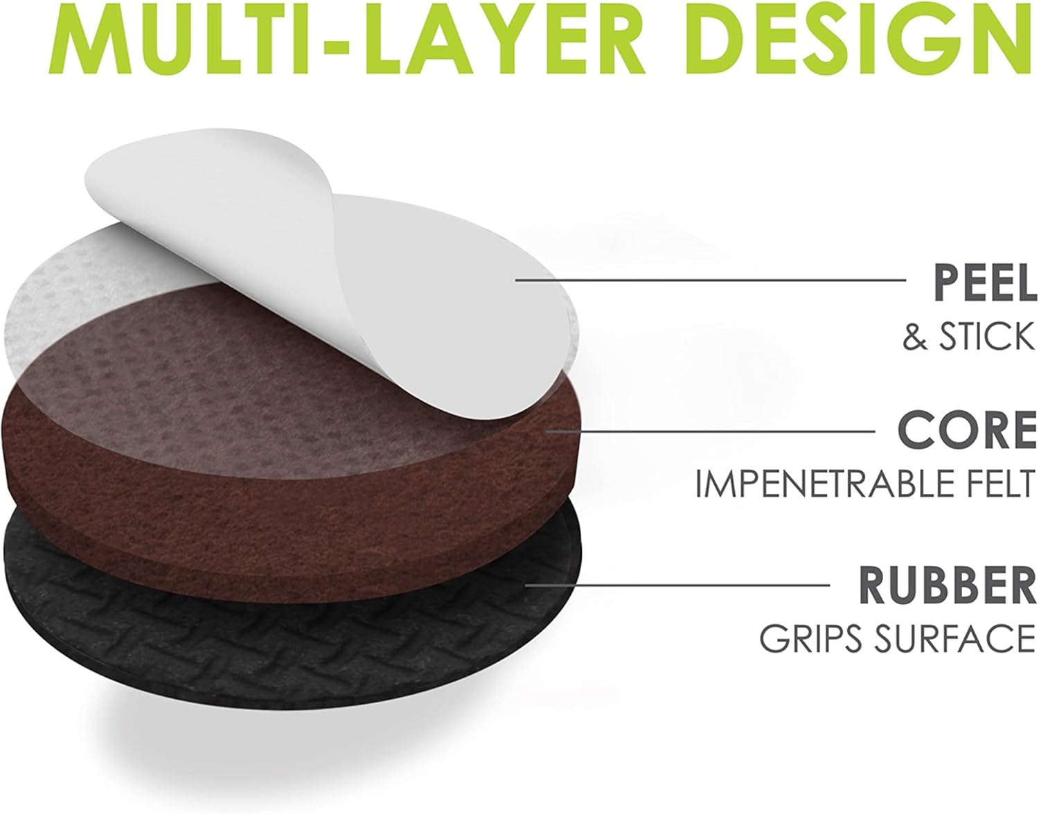 - Durable puncture proof furniture pads – Gorillapad non slip pads feature a specially formulated anti slide rubber base layer that provides maximum grip between furniture and floor and have a puncture proof solid felt pad core for durability (covered by 5 year free replacement warranty).