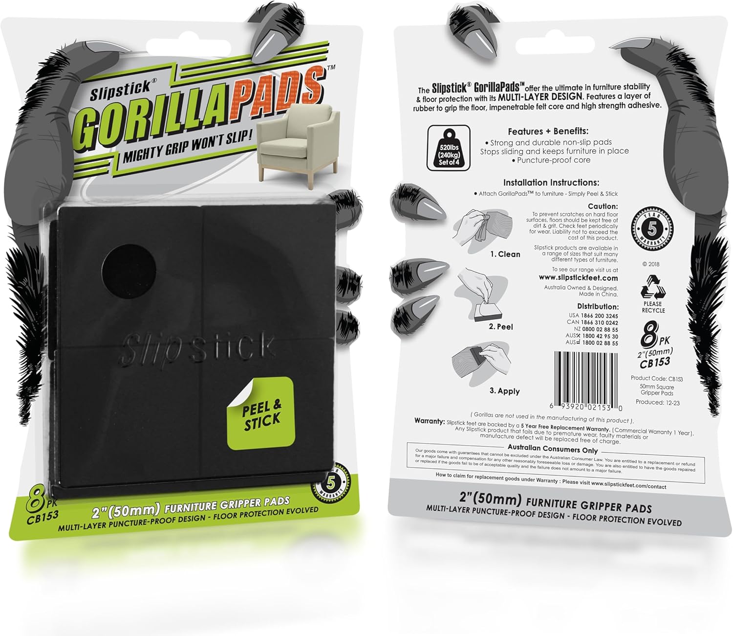- Mighty grip that wont slip – Gorillapad furniture grippers by Slipstick are the universal solution to stop unwanted movement or sliding of furniture / objects and effectively protect hard surfaces from scratches or damage. Premium adhesive non slip furniture pads.