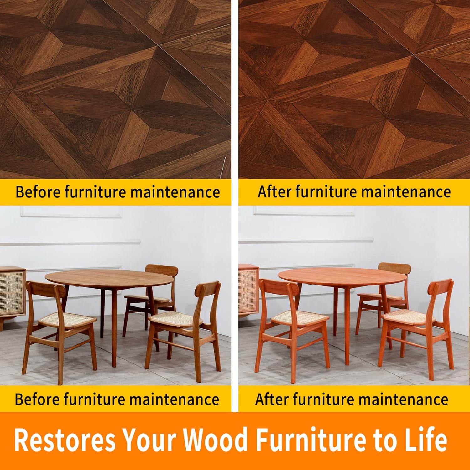 - 【Furniture Reborn】Using all-around beeswax furniture polish can not only remove wax and dirt accumulation over the years but also polish it to restore the appearance of old furniture, making it look like a brand new product. It forms a protective film on the wooden surface, which keeps the furniture its natural and beautiful appearance for a long time.