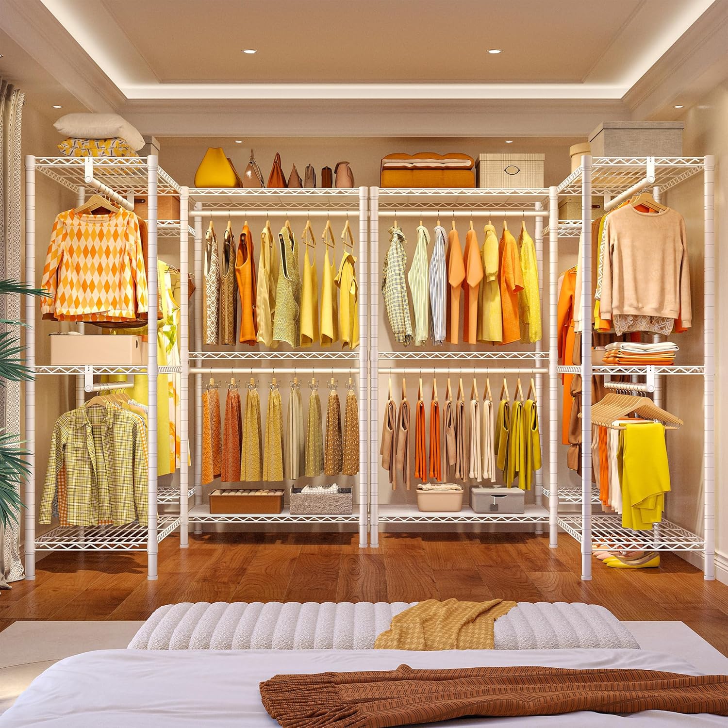 Raybee Clothes Rack,Clothing Racks for Hanging Clothes Heavy Duty,Adjustable Garment Rack with Shelves,rolling clothes rack Max Load 905LBS,75" W x 77" H x 17.8" D,White