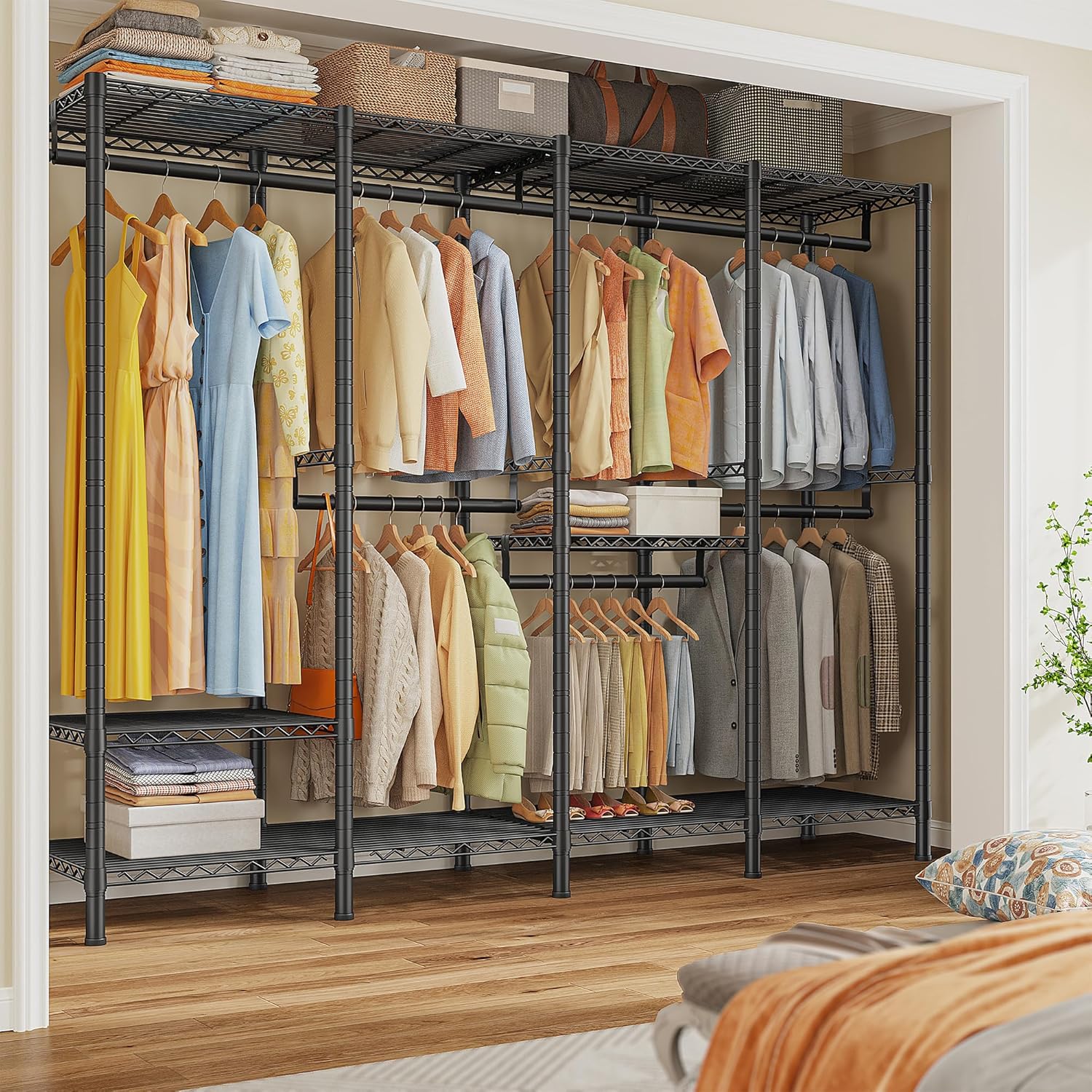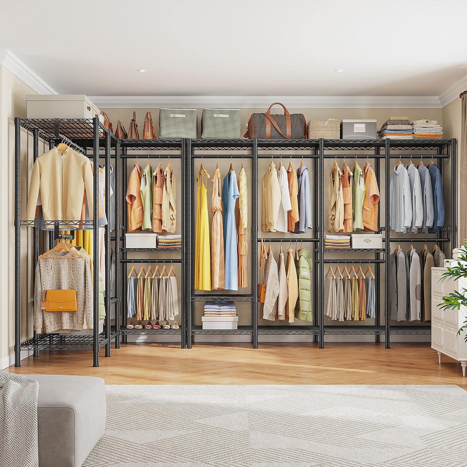 - Large Dimensions & Strong Capacity: Large size 75.8"W*17.7" D*76.9"H. Clothes rack with strong capacity 1100 lbs, which can hang 280+ clothes, and store suitcases, storage boxes, baskets, folded clothes. Tips: Prior to purchase, please ensure the size aligns with need.