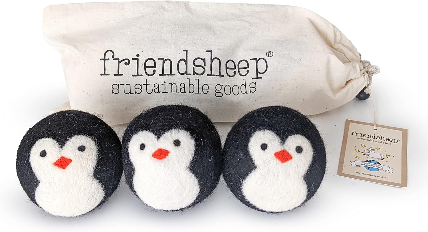 Friendsheep Wool Dryer Balls, Organic Reusable Fabric Softener Alternative for Laundry, Handmade, Fair Trade, Hypoallergenic, Eco-Friendly, Plastic-Free (3 Pack XL – Penguin)