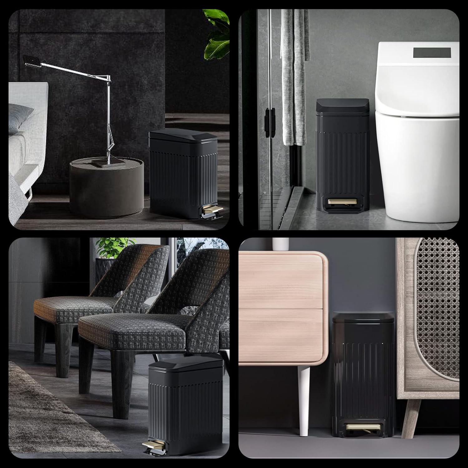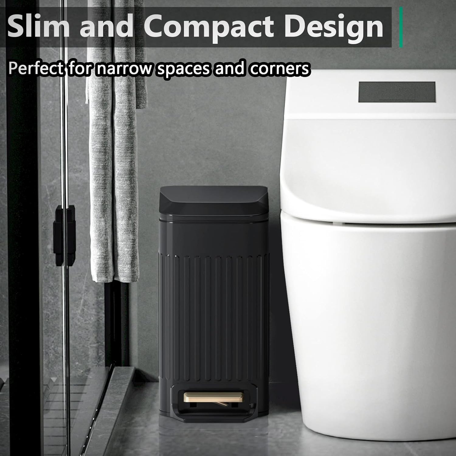 - Slim Design: The rectangular trash can is the perfect size for inside cabinets, under counters, under sinks, and other small narrow spaces; such as bathroom, bedroom, office, toilet, kids room, powder room, farmhouse, apartments, campers, RVs, dorm rooms, etc