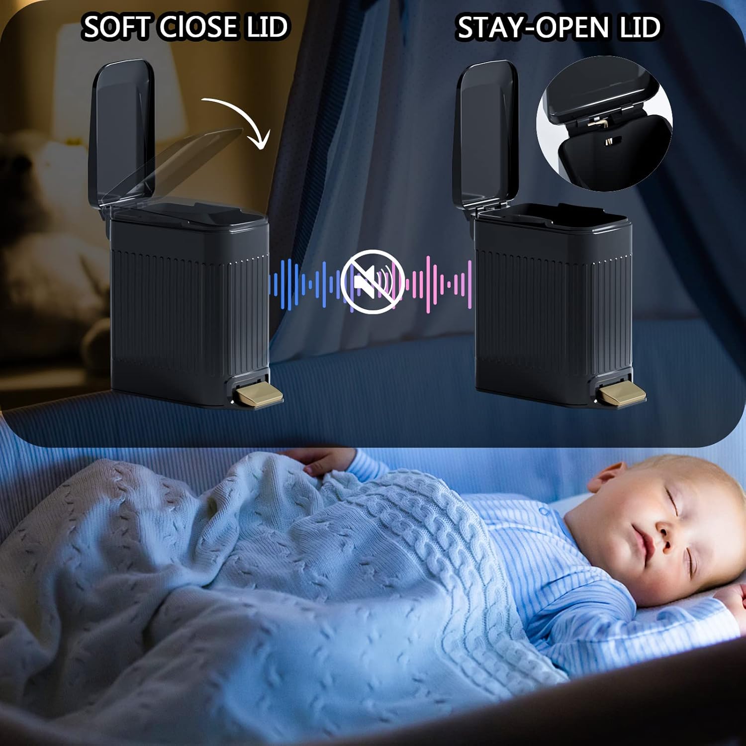 - Silent Soft Close & Stay Open Lid: Stainless Steel trash can, the lid will automatically close after you press the pedal to open the lid, very quiet, no loud noise, don’t worry about disturbing the rest of your family; Push the lid up by hand to hold the lid at 90°to keep it open